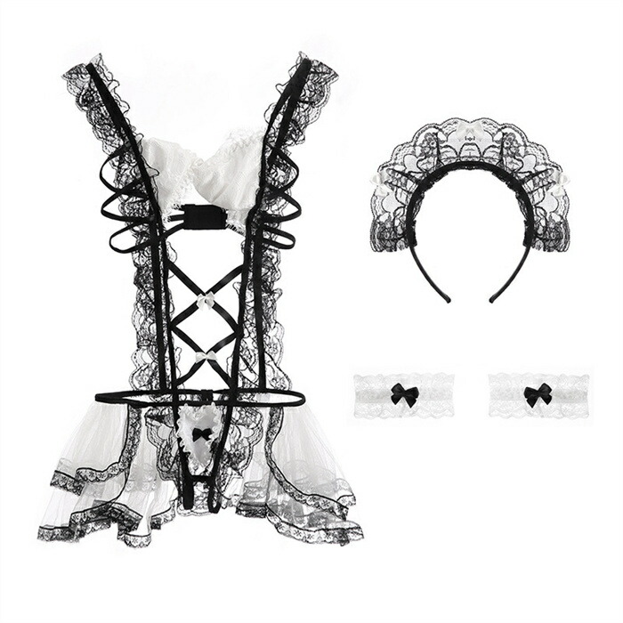 メイド服 テディ 穴あき下着 セクシー コスプレ 変装 仮装 コスプレ用インナー 特集 ブラック ホワイト M(40-60kg) L(60-70kg)
