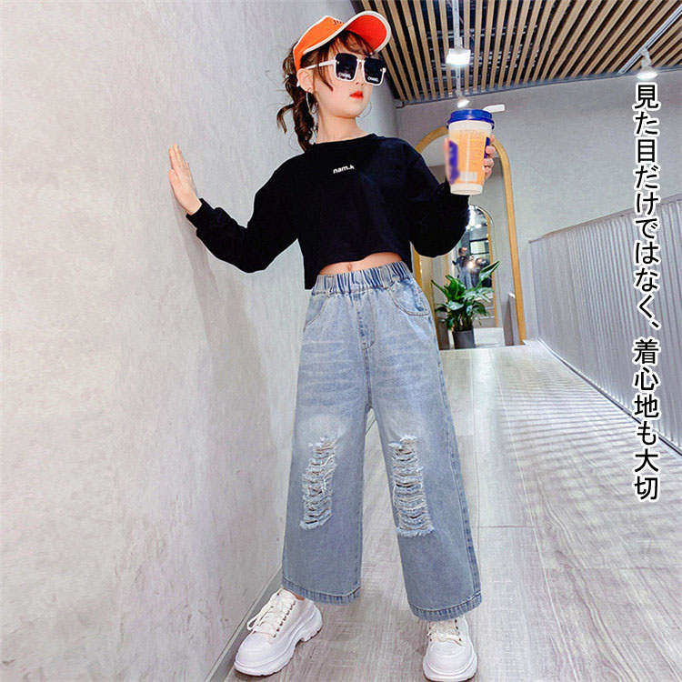 女の子 ワイドレッグパンツ 学生 デニ キッズ ボトムス パンツ 続々入荷中 120(日本110cm相当) 130(日本120cm相当) 140(日本130cm相当) 150(日本140cm相当) 160(日本150cm相当) 170(日本160cm相当)