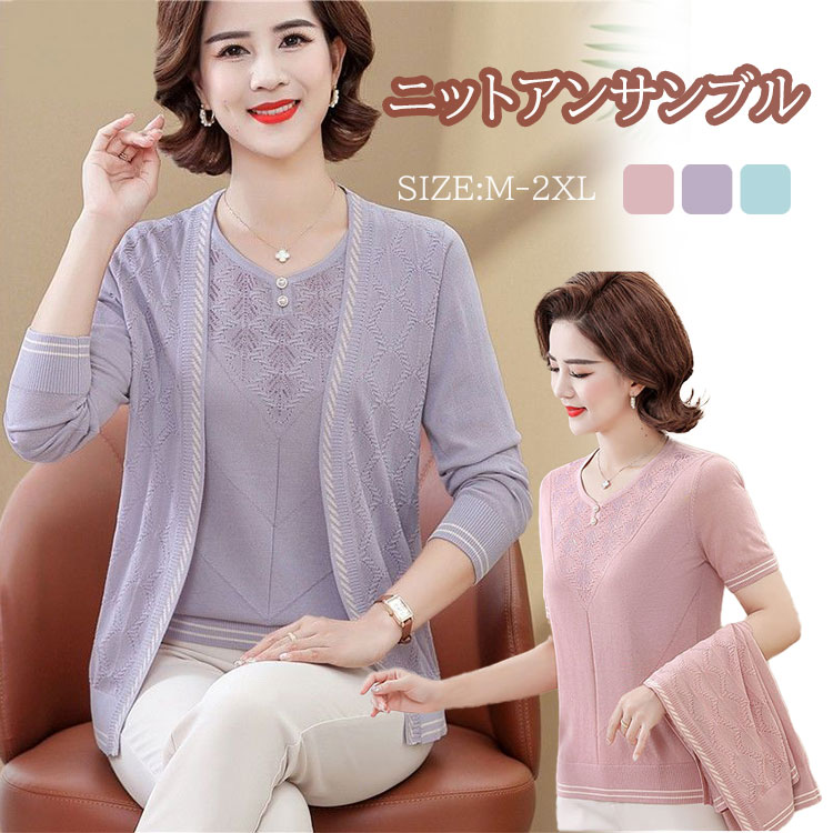 アンサンブル ニット カーディガン レ トップス アンサンブル 続々入荷中 パープル ピンク グリーン M L XL 2XL