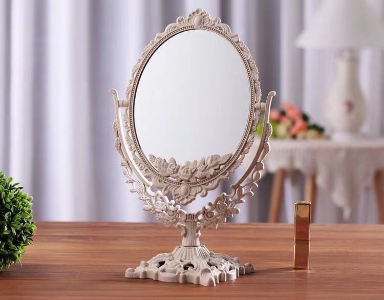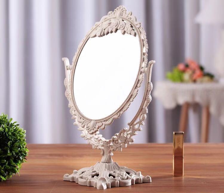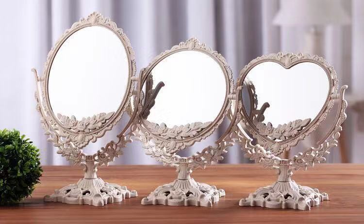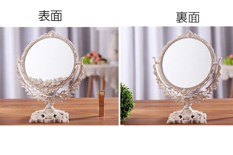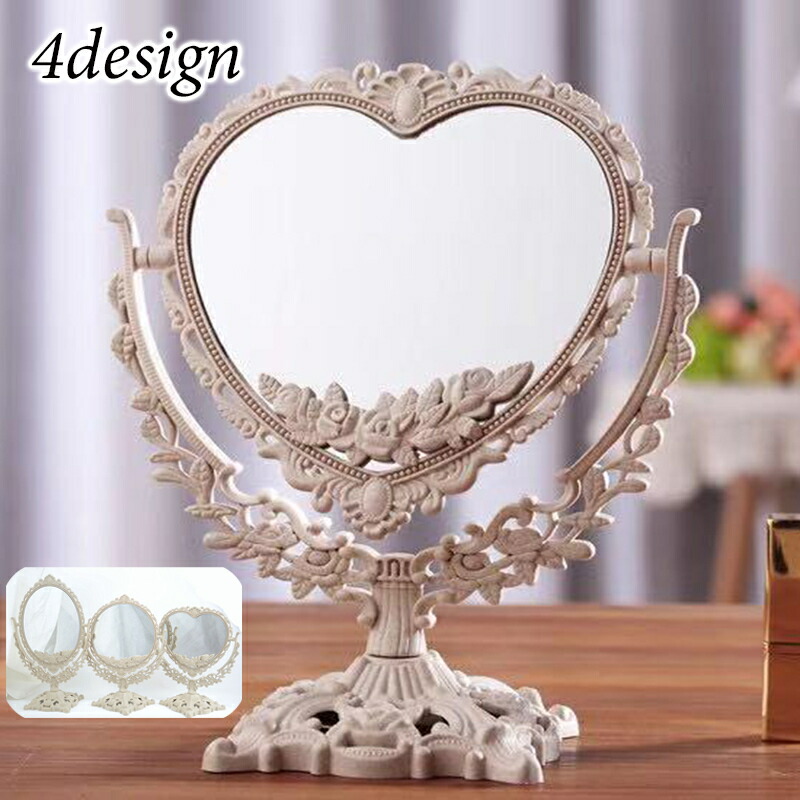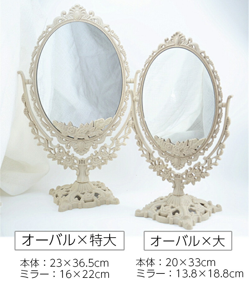 卓上ミラー 鏡 両面 アンティーク調 オーバル×大 ラウンド ハート オーバル×特大