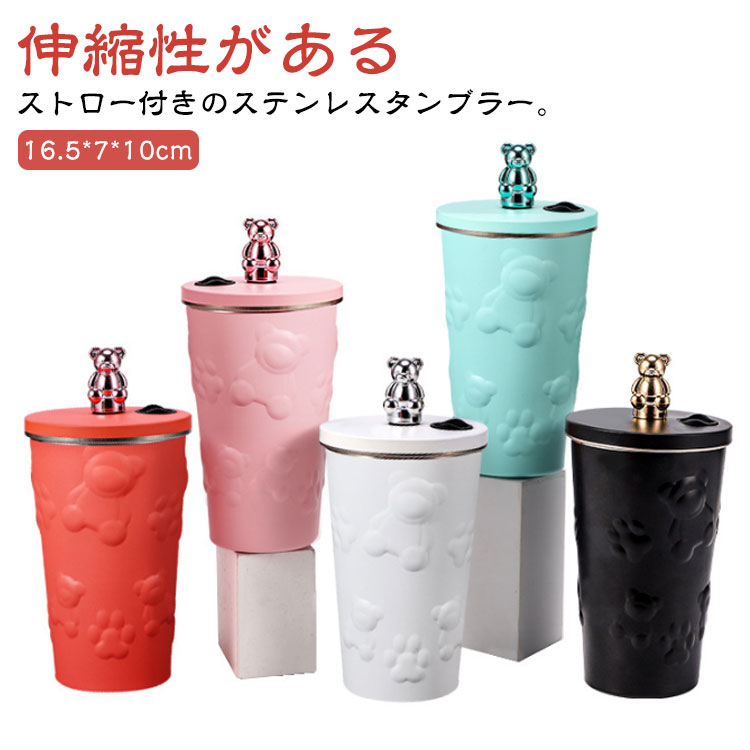 タンブラー 水筒 伸縮ストロー付き 6 食器 カトラリー グラス グラス タンブラー タンブラー 新作 ホワイト レッド グリーン ピンク ブラック