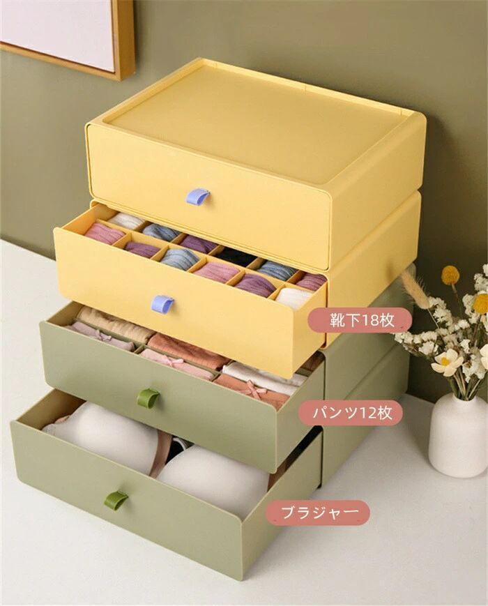 ブラジャー 仕切りなし クローゼット グリーン イエロー ピンク レッド 仕切りなし 12マス 18マス