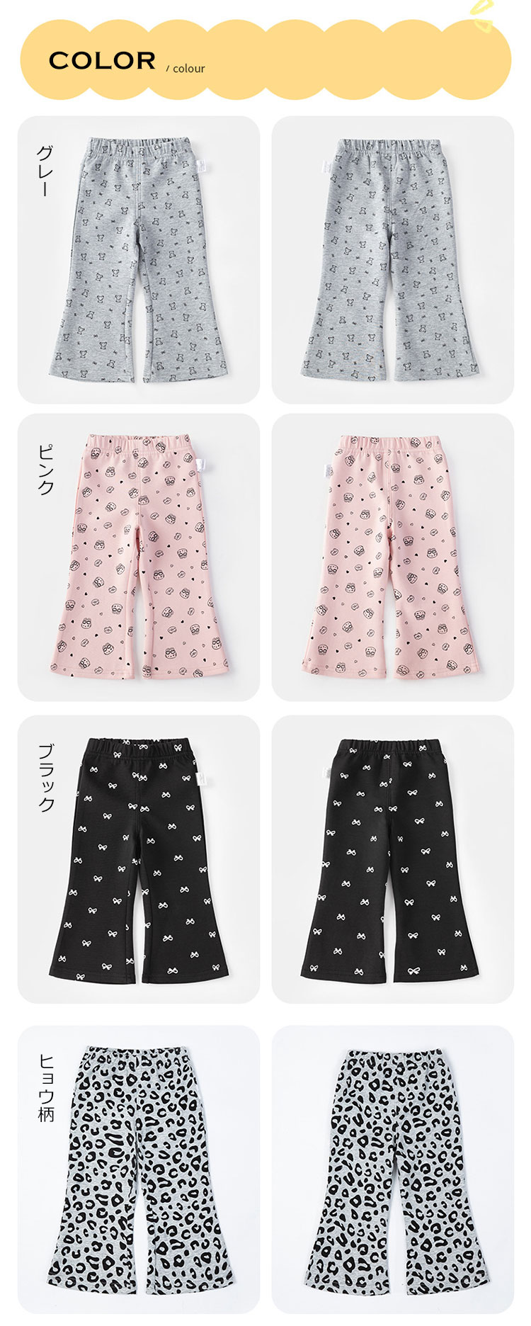 子供服 女の子 フレアパンツ キッズ ベビー ベビー服 ファッション ボトムス パンツ 新登場! ブラック グレー ピンク ヒョウ柄 73cm 80cm 90cm 100cm 110cm