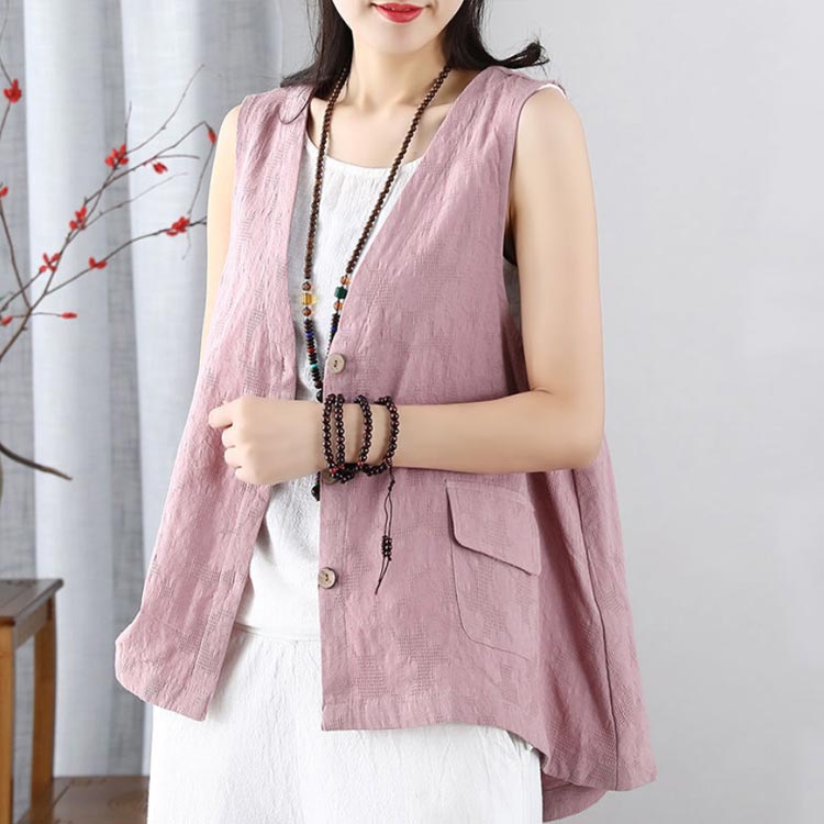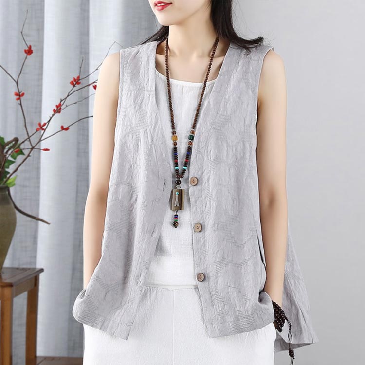 花模様が大人可愛い ジレ リネンベスト トップス ベスト 豊富な品揃え グレー ピンク ネイビー ホワイト M L XL 2XL