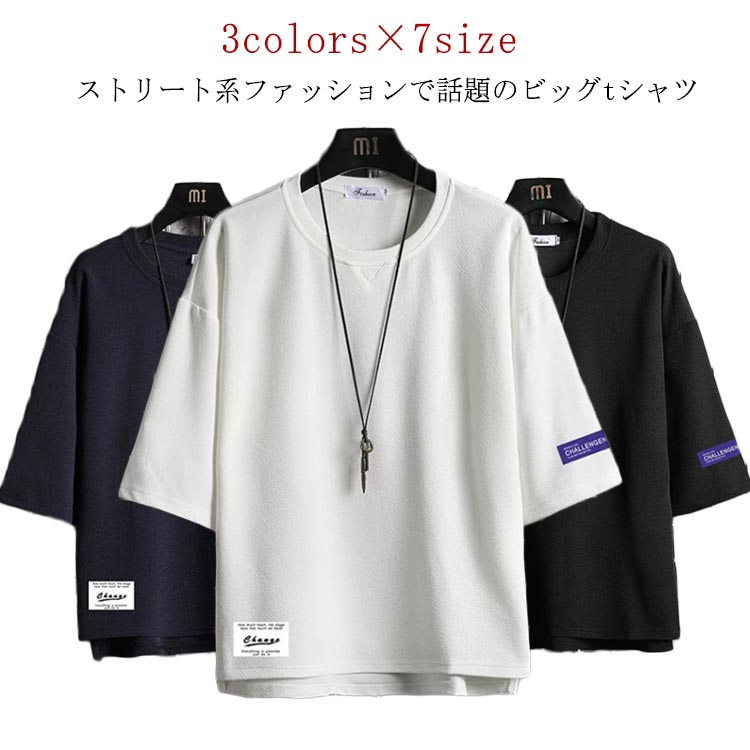 七分袖 ゆったり アイスシルク tシャ トップス Tシャツ カットソー 特集 ネイビー ホワイト ブラック M L XL 2XL 3XL 4XL 5XL