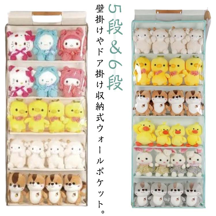 ぬいぐるみウォールポケット 大容量 収 5段ベージュ 5段グリーン 6段ベージュ 6段グリーン