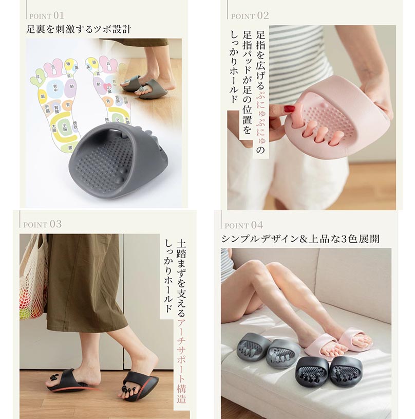 5本指スリッパ ラディアンヌ ツボ押し 日用品雑貨 文房具 手芸 超目玉商品 ダスクブラック スモーキーグレー ダックピンク ライトピンク