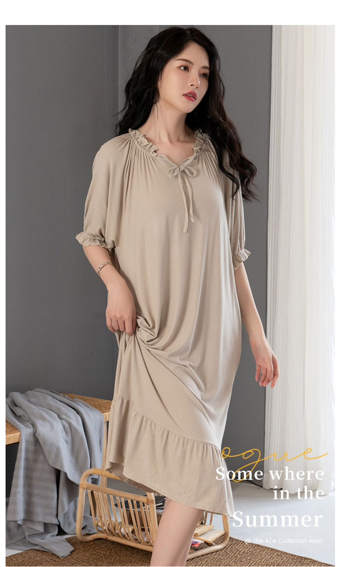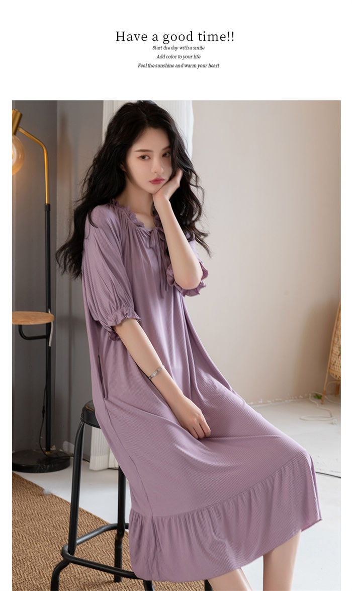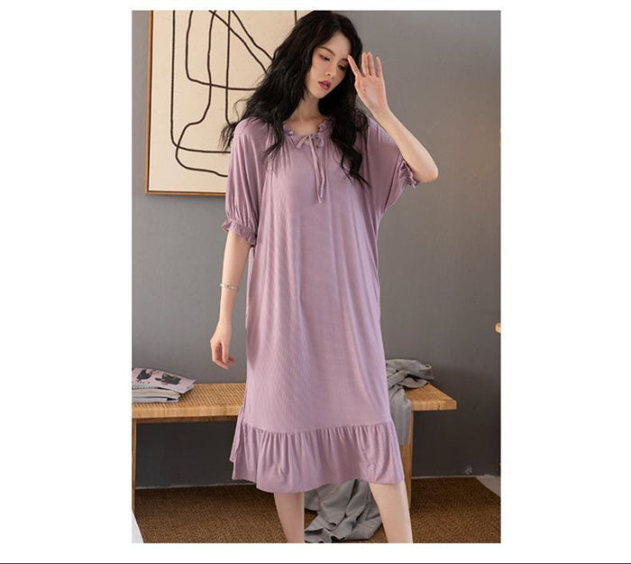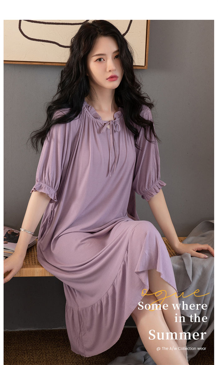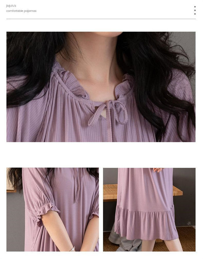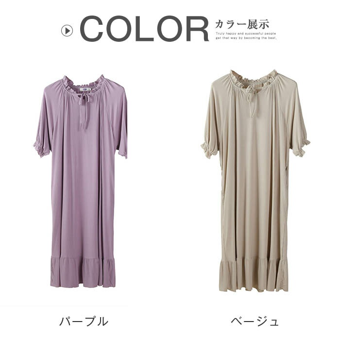 ルームワンピース パジャマ ネグリジェ パープル ベージュ M L XL 2XL