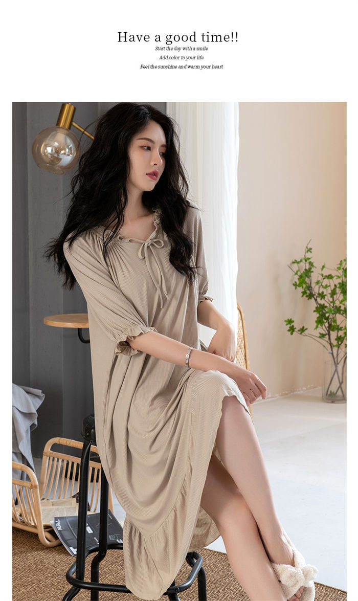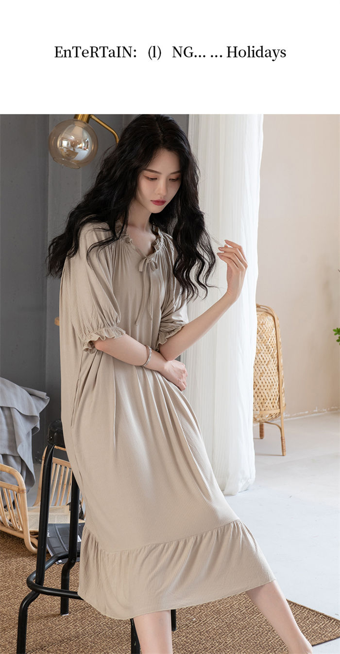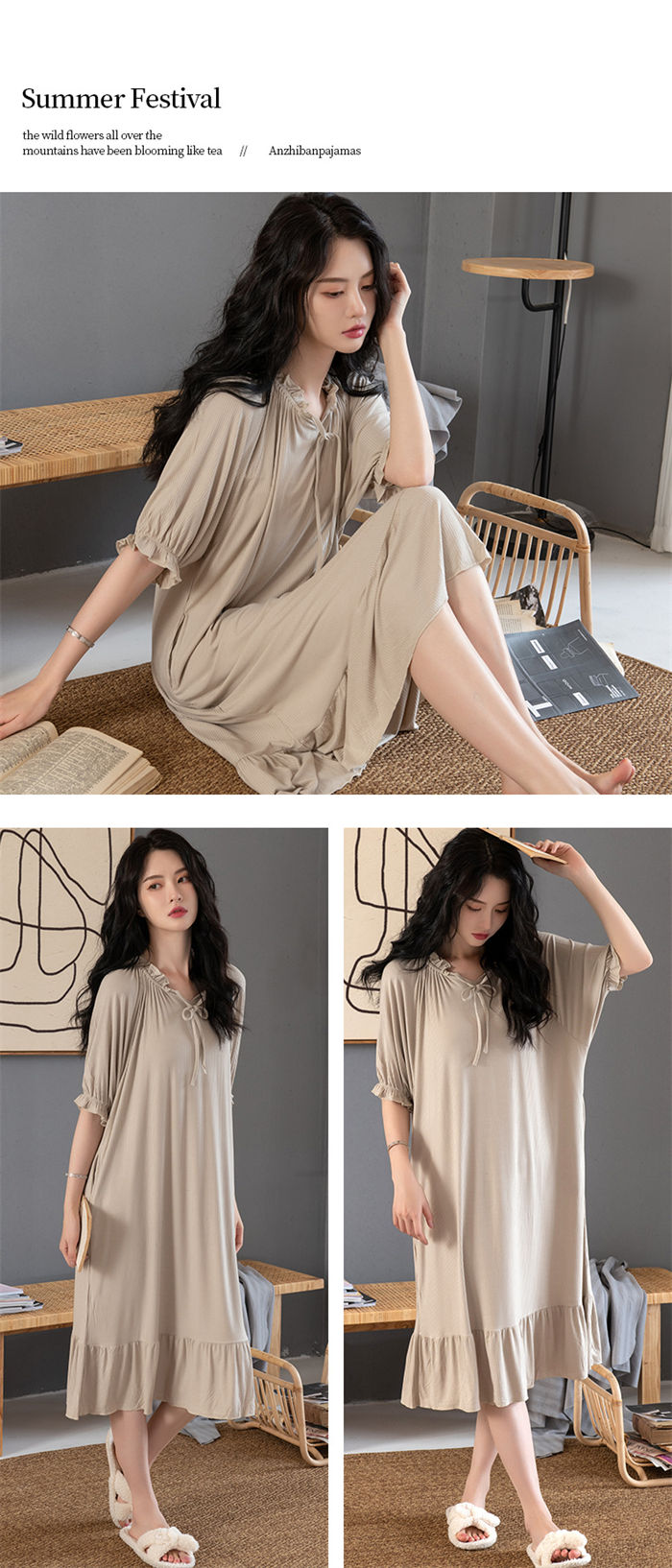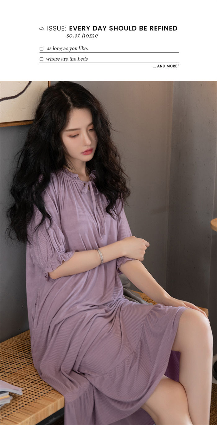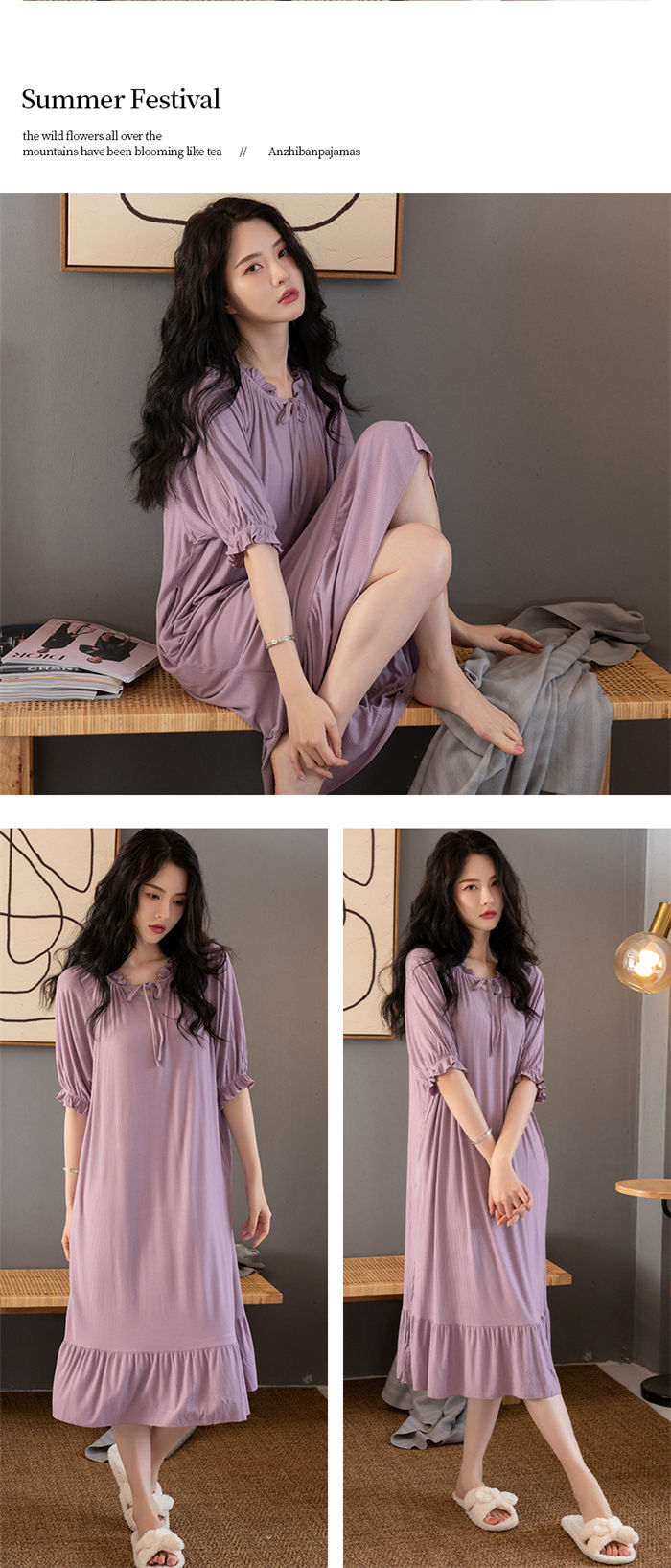 ルームワンピース パジャマ ネグリジェ パープル ベージュ M L XL 2XL