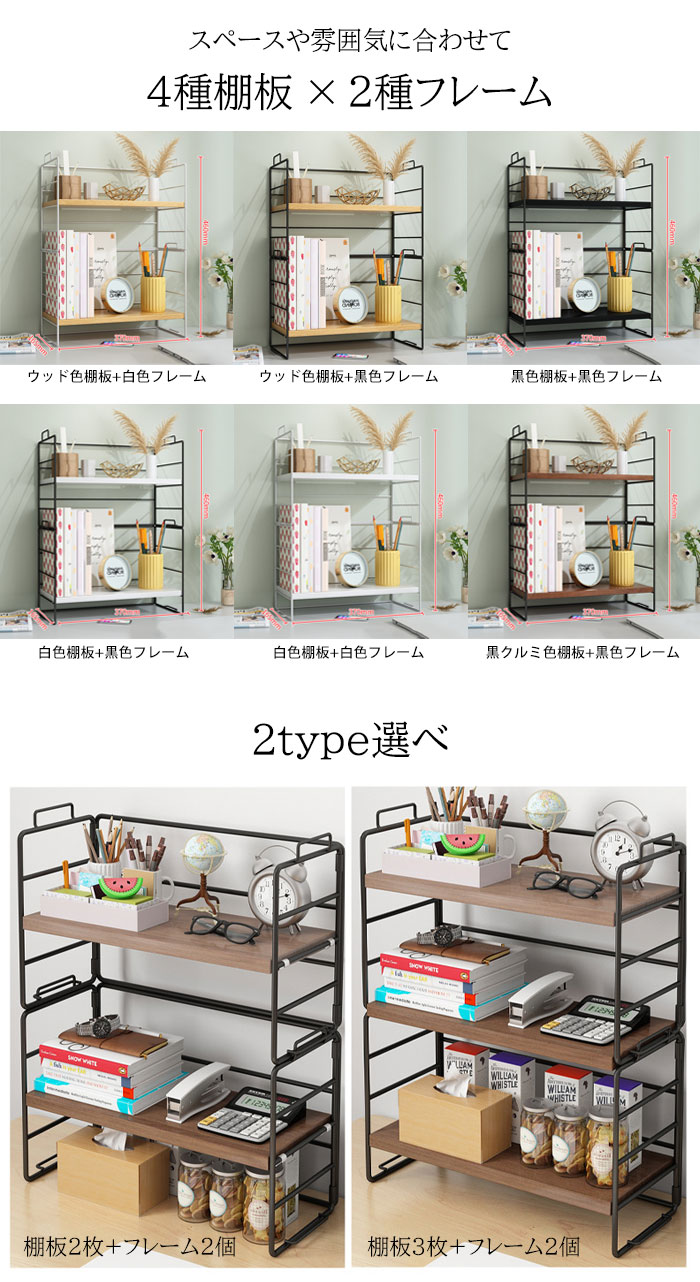デスク上 棚 ラック 卓上 ミニラック ウッド色棚板+白色フレーム ウッド色棚板+ブラック色フレーム ブラック色棚板+ブラック色フレー 白色棚板+白色フレーム ブラッククルミ色棚板+ブラック色