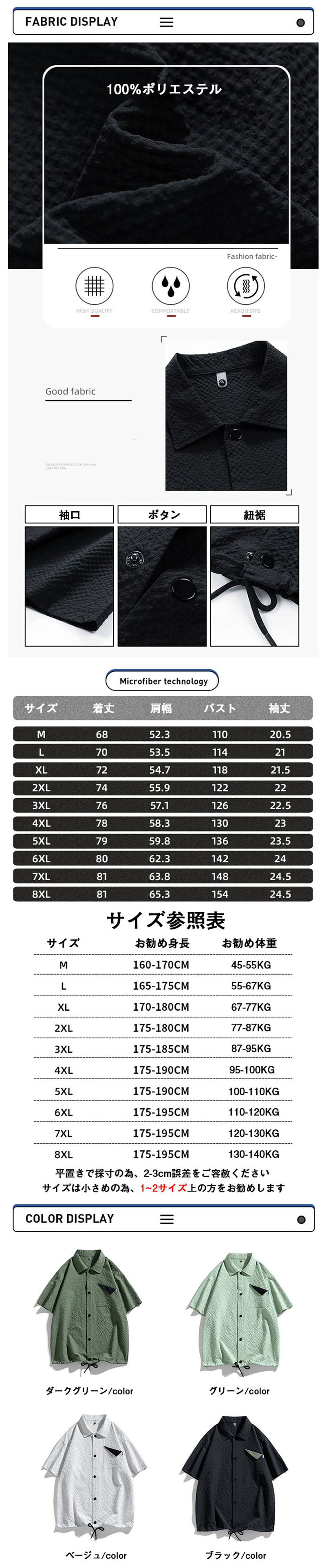 シャツ 半袖シャツ メンズ カジュアル メンズファッション 早い者勝ち ダークグリーン ブラック ベージュ グリーン M(S相当) L(M相当) XL(L相当) 2XL(L/LL相当) 3XL(LL/3L相当) 4XL(3L/4L相当) 5XL(4L/5L相当) 6XL(5L/6L相当) 7XL(6L/7L相当) 8XL(7L/8L相当)