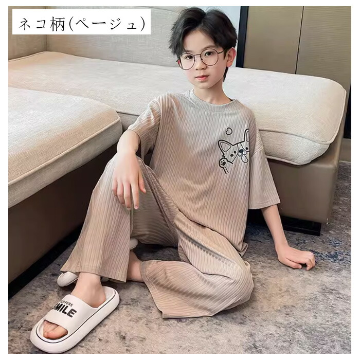 子供パジャマ 男の子 ルームウェア モ キッズ ベビー マタニティ 続々入荷中 英文柄(グレージュ) 英文柄(グリーン) ネコ柄(パープル) ネコ柄(ページュ) ネコ柄(アンズホワイト) 120 130 140 150 160 170