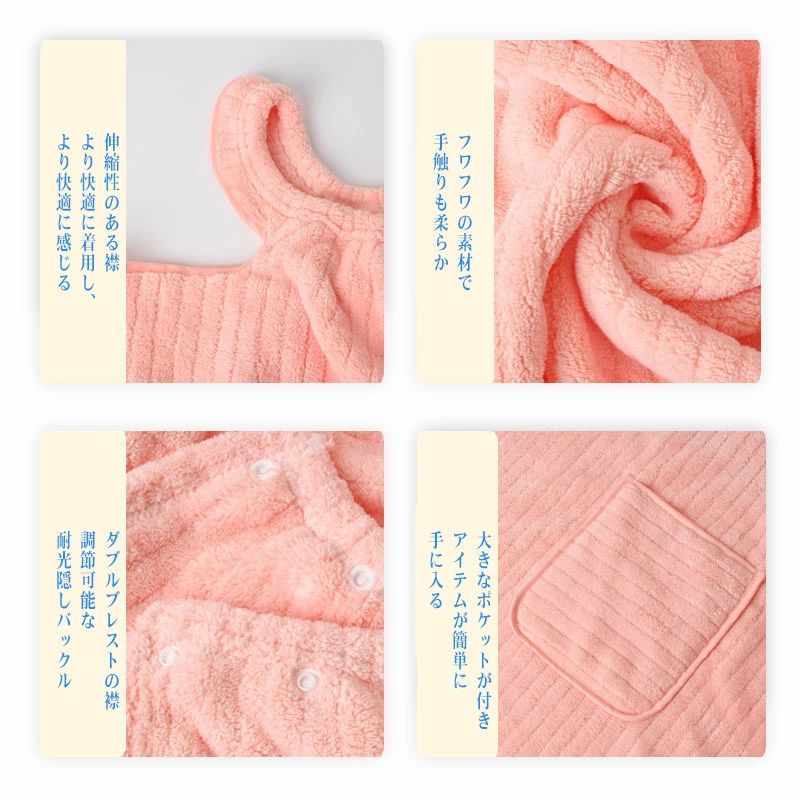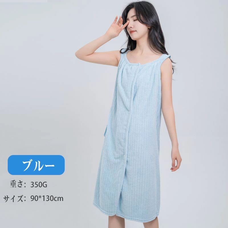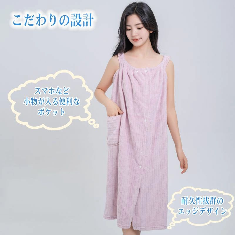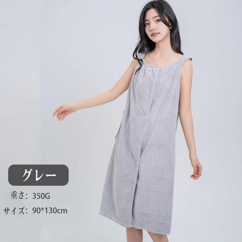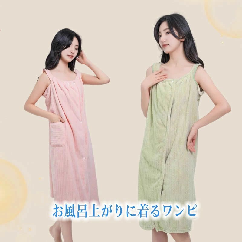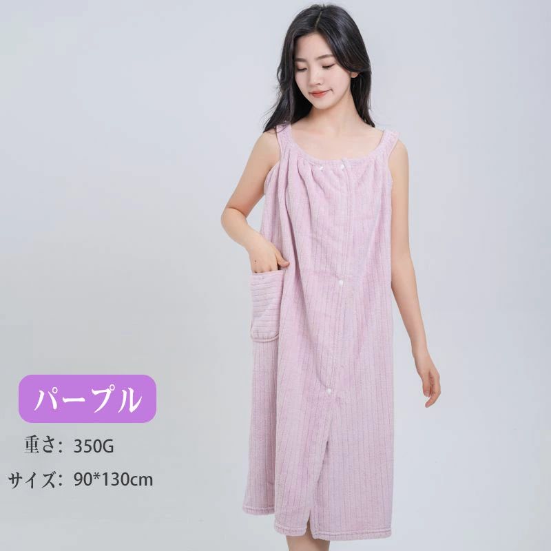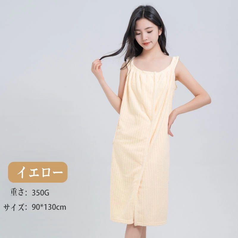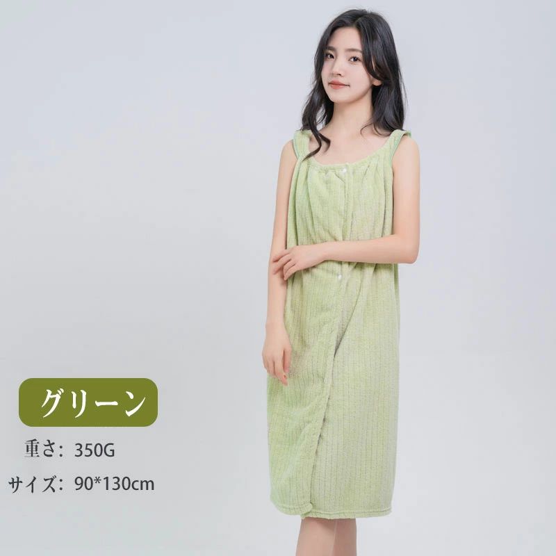 お風呂上がり タオルワンピース 着るタ イエロー グレー ピンク グリーン ブルー パープル
