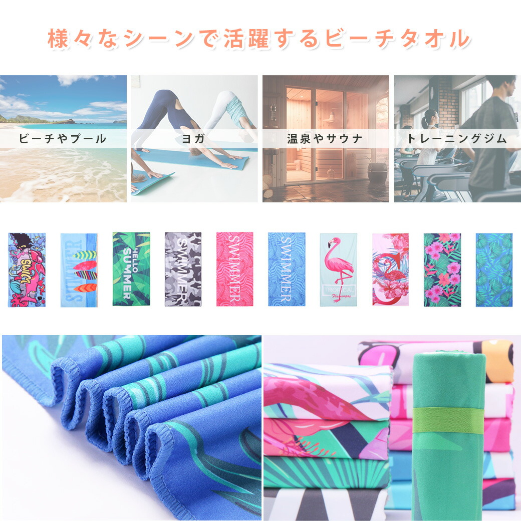 ビーチタオル スイムタオル 大判タオル 日用品雑貨 文房具 手芸 豊富な品揃え シャーク ブルー 迷彩×グレー ゼブラ×ピンク フラミンゴ ハイビスカス サーフボード ゼブラ×ブルー グリーン ボタニカル