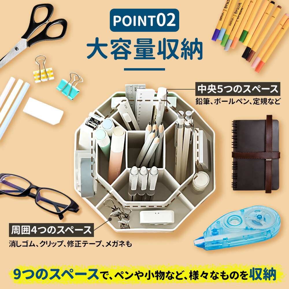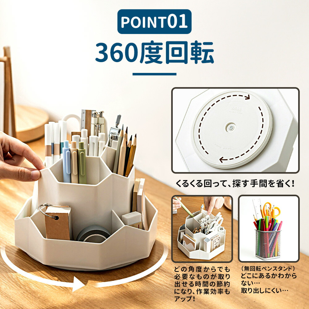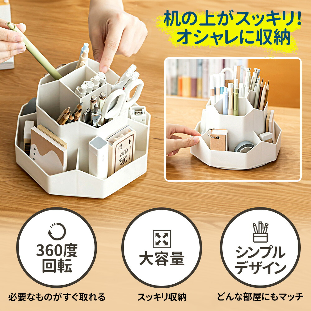 デスクオーガナイザー 卓上収納 オフィス メガネスタンド デスク プレゼント 文房具 まわるペン立て