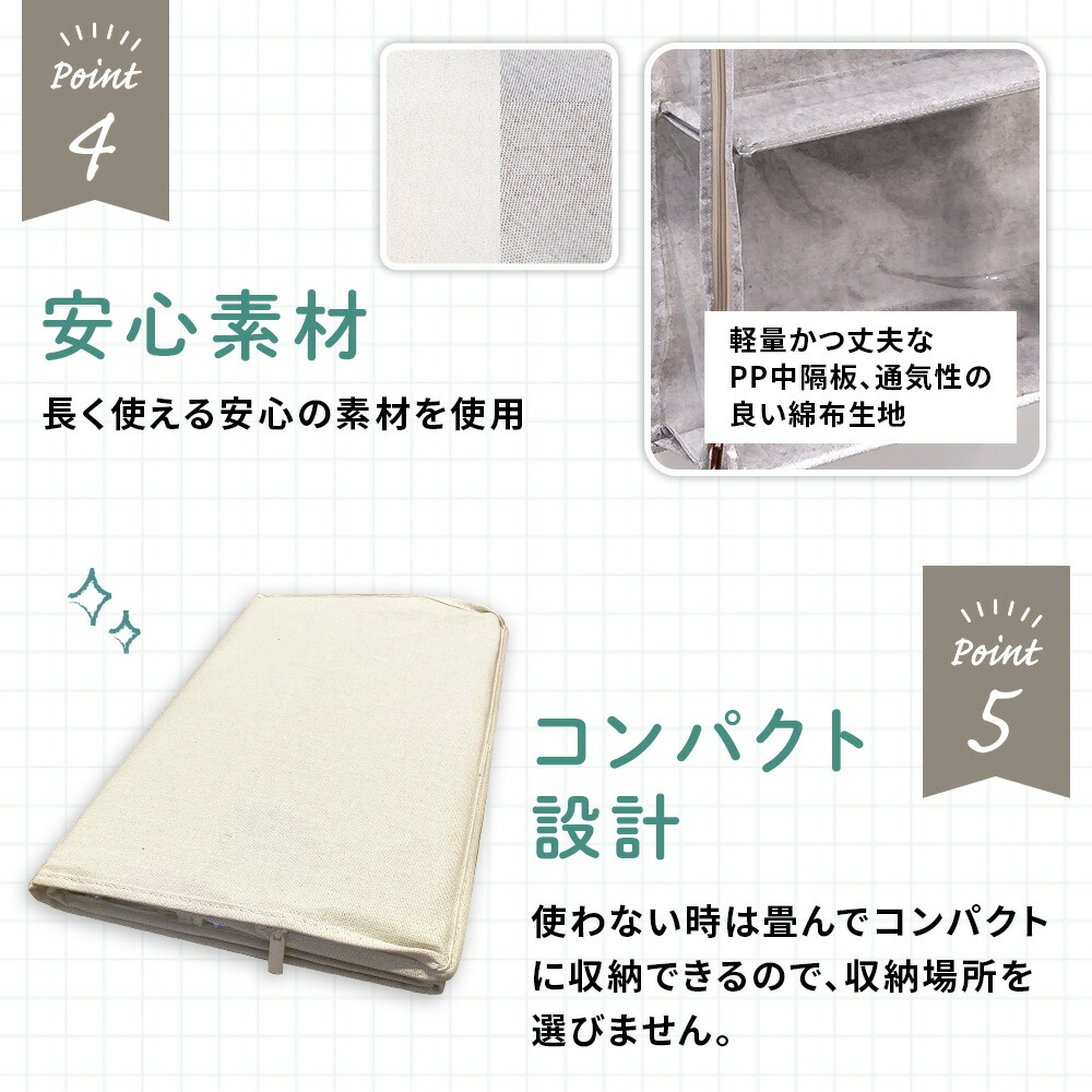 通気性の良い綿布生地で、湿気やカビを防ぎ清潔に保ちます。