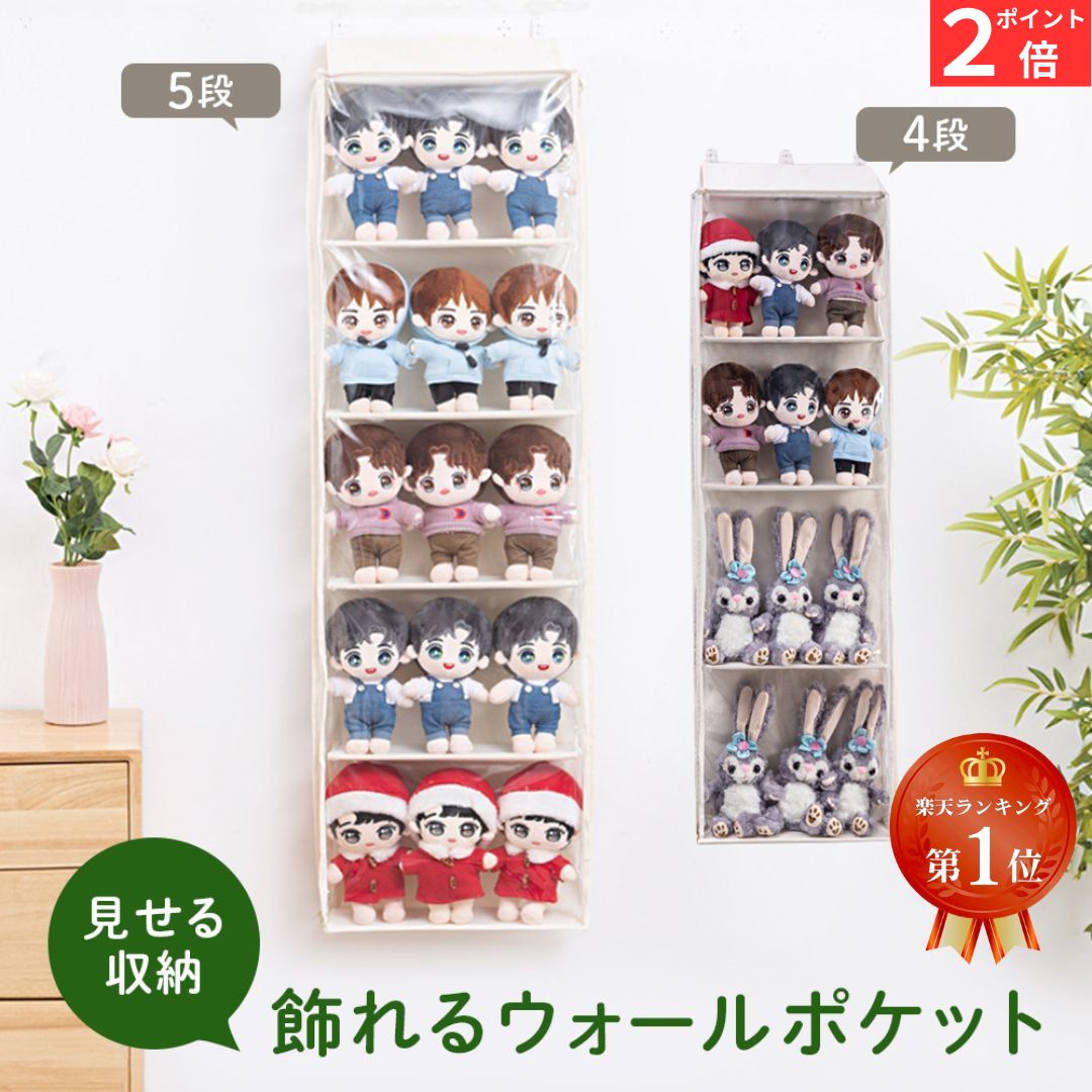 ウォールポケット ぬいぐるみ 収納 ディスプレイケース コレクションケース 5段 4段 収納ボックス コレクション 見せる収納 小物 ドア掛け おもちゃ 大容量 壁掛け収納 収納ポケット グッズ