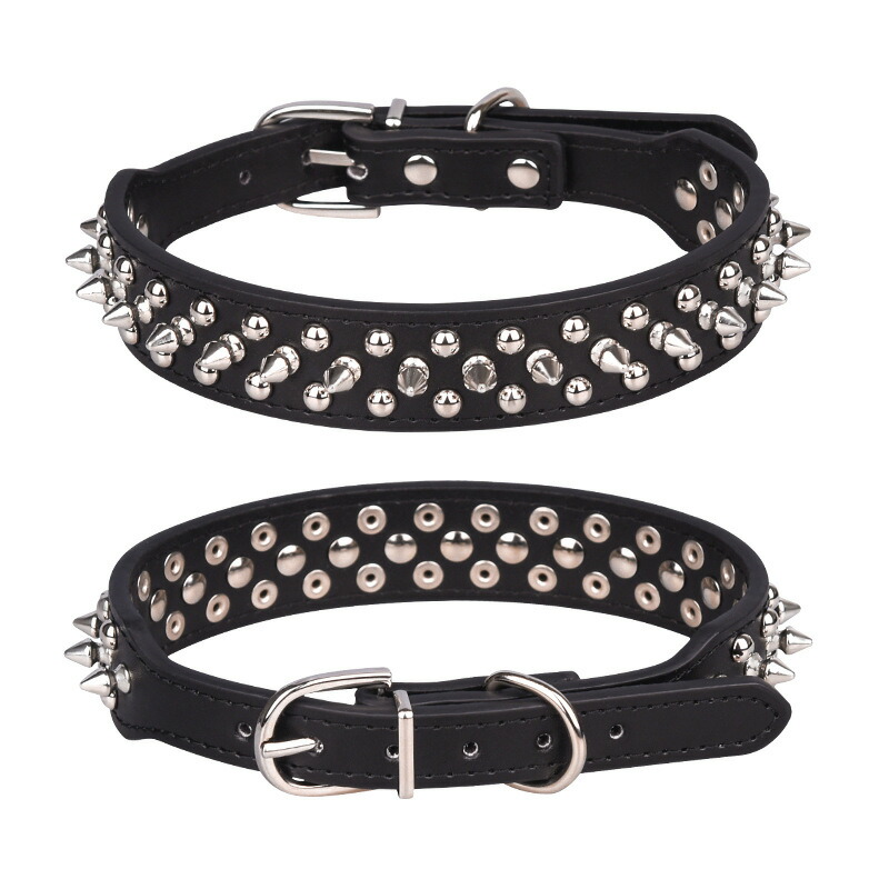犬 猫 ペット 首輪 スタッズ トゲトゲ 5穴 調節 可能 小型犬 中型犬 かわいい ワイルド おしゃれ 大型犬