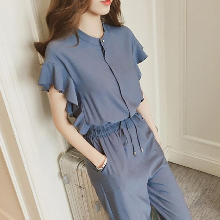 セットアップ レディース カジュアル スーツ セットアップ パンツスーツ 人気 ブラック ブルー M L XL 2XL 3XL 4XL 5XL