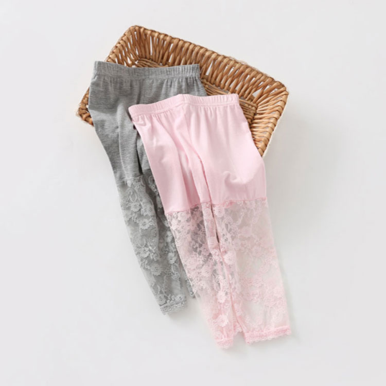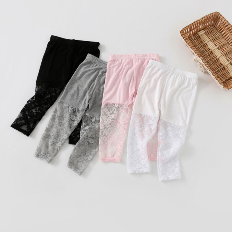 子供 レギンス 7分丈 レース付き レ キッズ ベビー マタニティ 豊富な品揃え ホワイト グレー ピンク ブラック 100 110 120 130 140 150