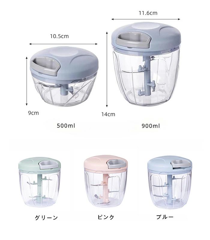 簡単ひもを引くだけフードプロセッサー キッチン用品 食器 調理器具 続々入荷中 グリーン ピンク ブルー 500ml 900ml