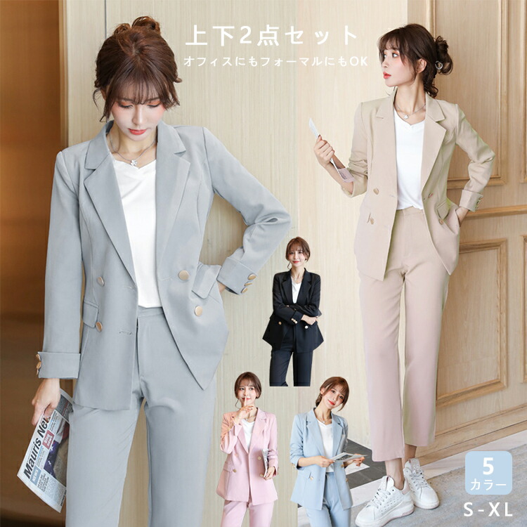 パンツスーツ セットアップ レディース スーツ セットアップ パンツスーツ 特集 ブラック ブルー ピンク ベージュ グレー S M L XL