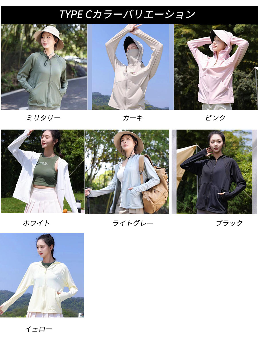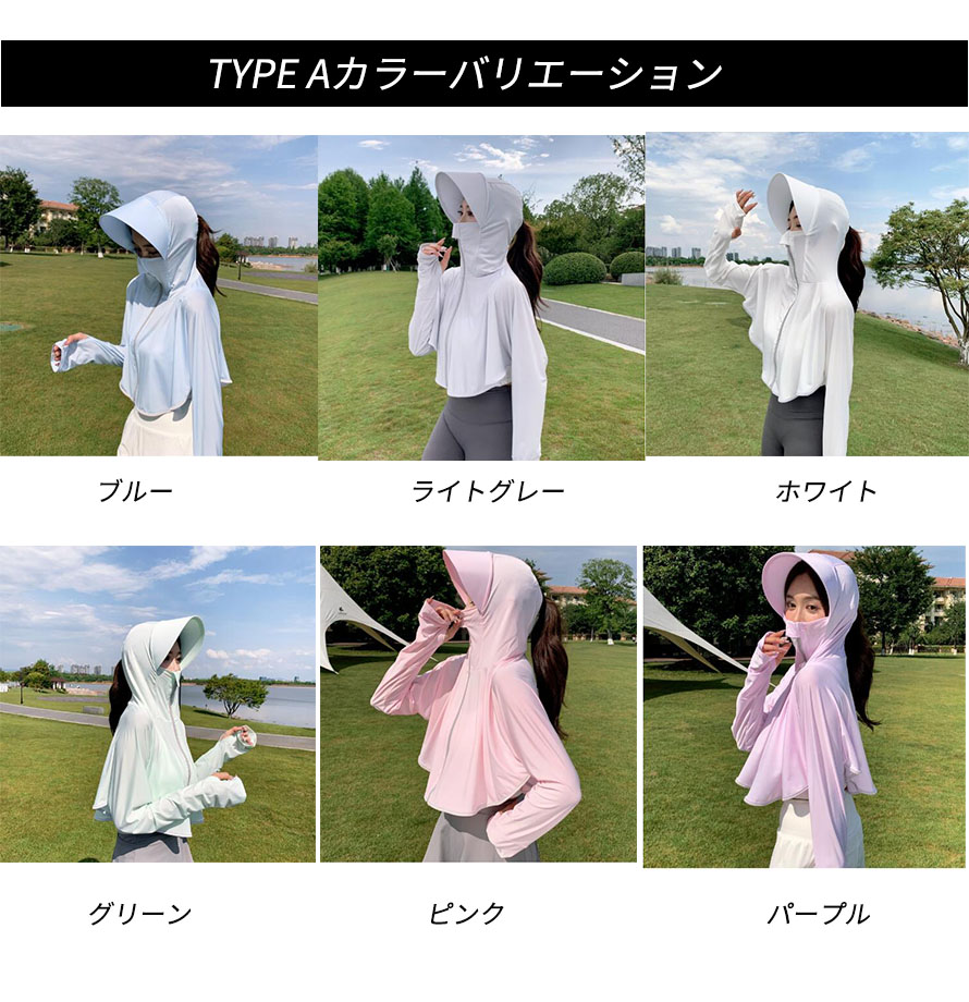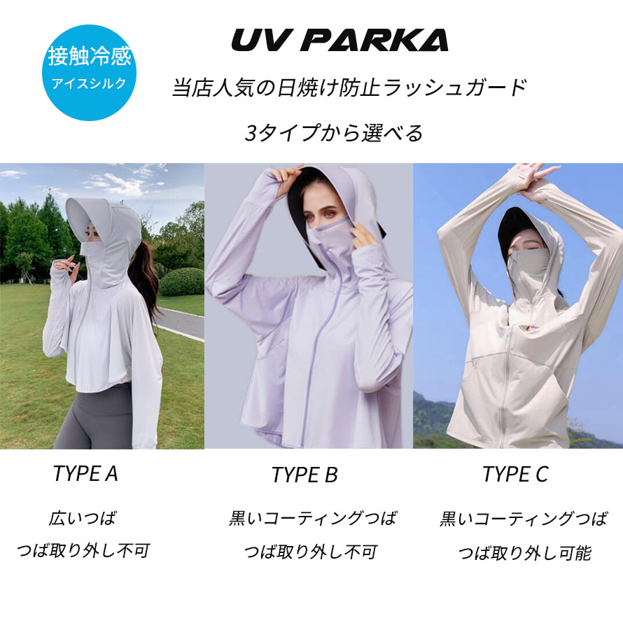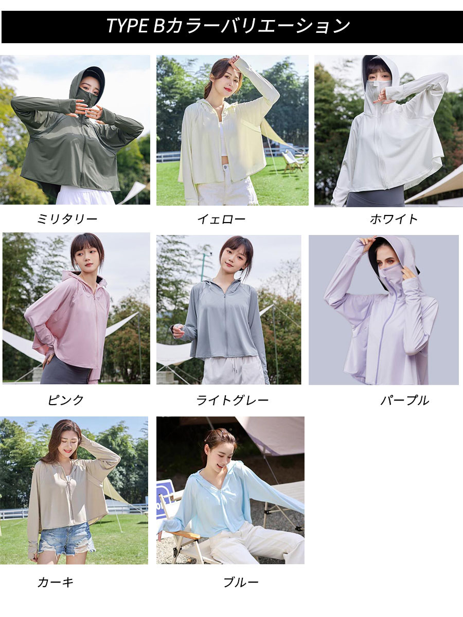 UV パーカー 冷感 ラッシュガード レディースファッション 早い者勝ち TYPE A TYPE B TYPE C ホワイト ブルー ライトグレー ピンク パープル グリーン ミリタリー イェロー カーキ
