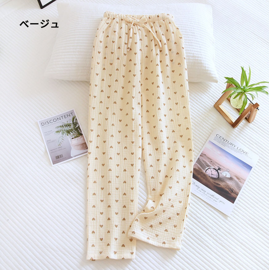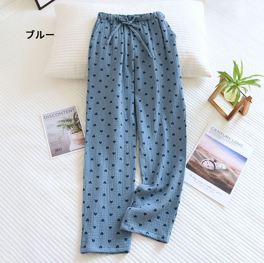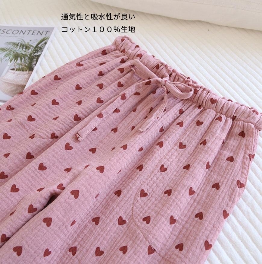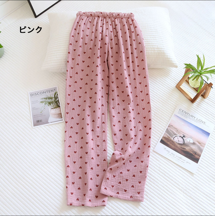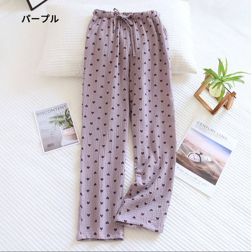 ダブルガーゼ ルームパンツ 心柄 ルー インナー 下着 ナイトウエア 豊富 ピンク パープル ブルー ベージュ M L XL