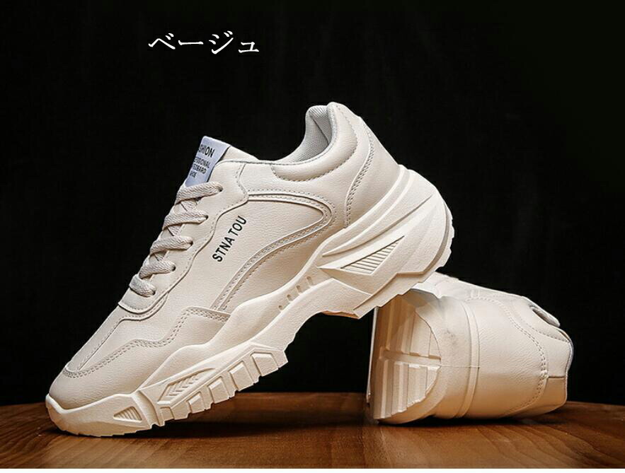 厚底 スニーカー メンズ ランニングシ メンズ靴 スニーカー 豊富な品揃え ホワイト ベージュ 39(24.5cm) 40(25cm) 41(25.5cm) 42(26cm) 43(26.5cm) 44(27cm)