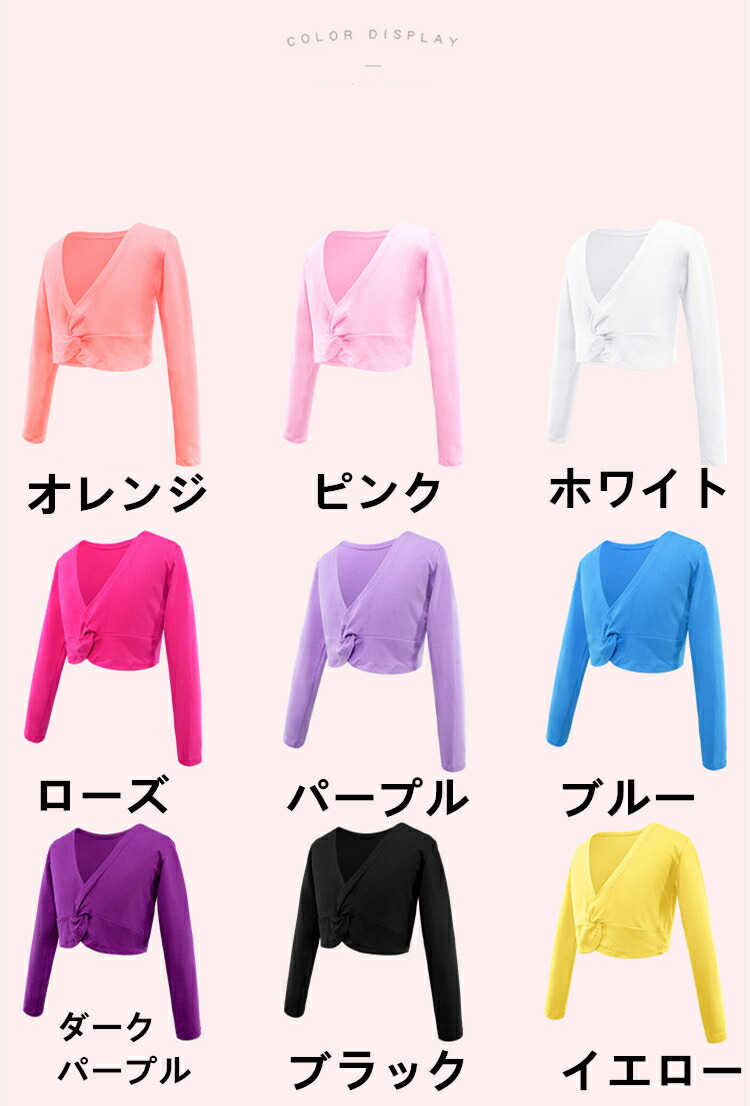 バレエ衣装 子供服 トップス カットソ キッズ トップス カーディガン ボレロ 通販 M L XL XXL ブラック ホワイト ピンク パープル オレンジ ローズ ブルー ダークパープル イエロー