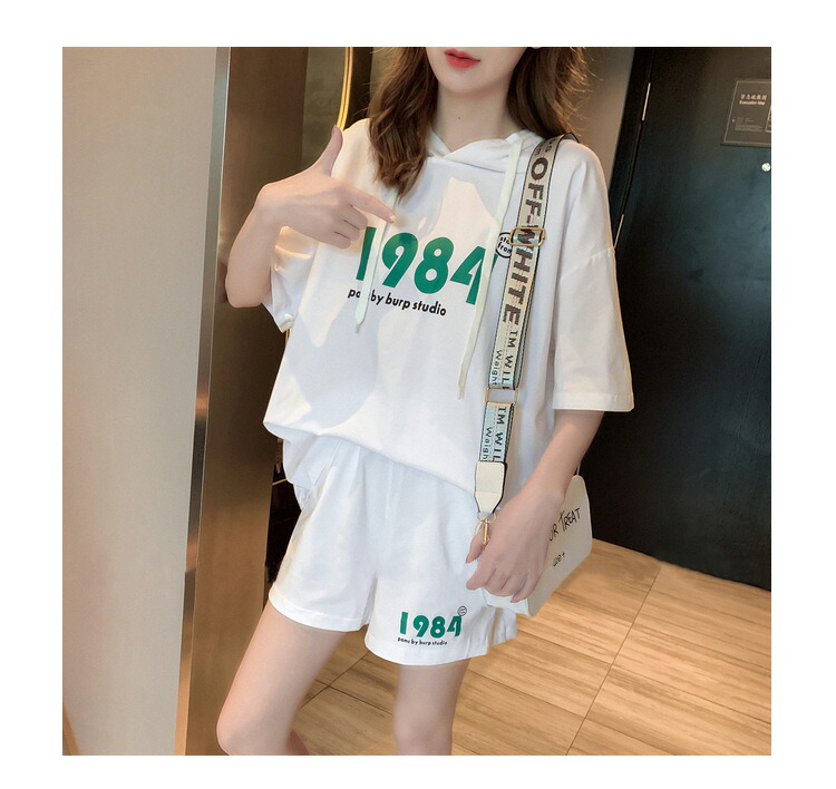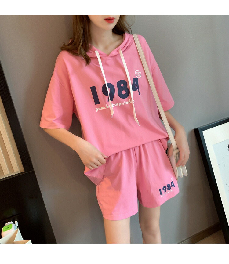 部屋着 ルームウェア セットアップ レディース 半袖 パジャマ 上下セット スウェット パーカー ショートパンツ 短パン ウエストゴム リラックス 韓国風 着痩せ プルオーバー 大人可愛い 体型カバー