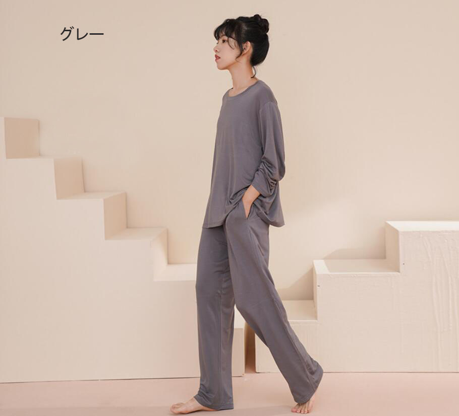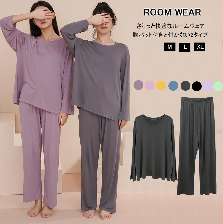 ルームウェア レディース 長袖 パジャ レディース ナイトウェア ルームウェア ルームウェア 上下セット 通販 胸パットつかない 胸パット付き パープル グレー ピンク イェローグレー ブルーグレー ブラック ライトパープル グリーン