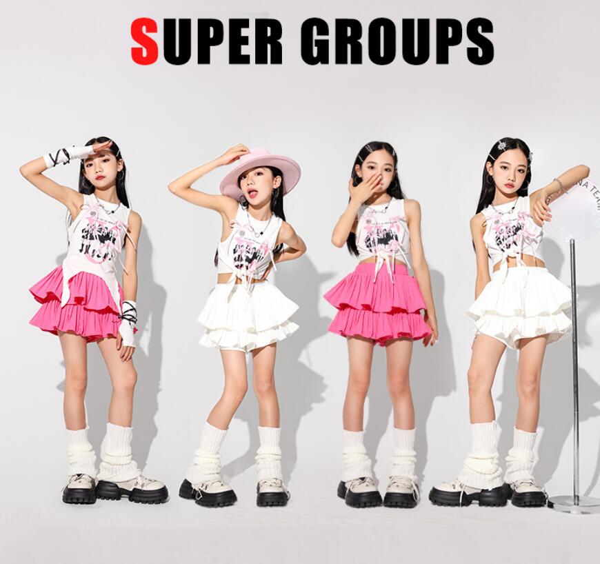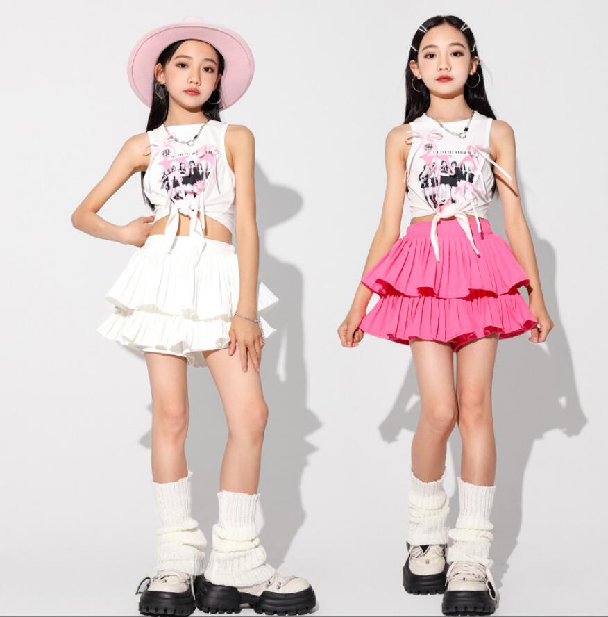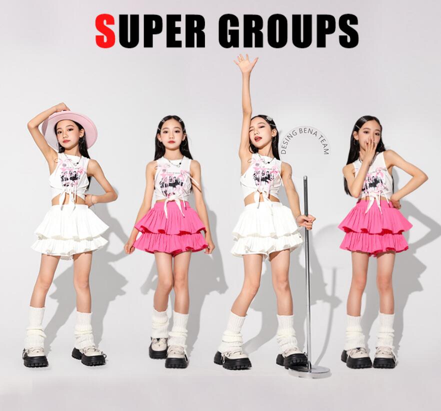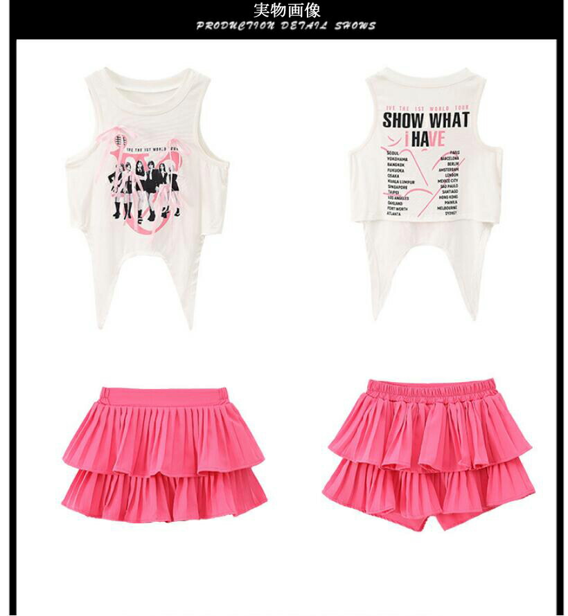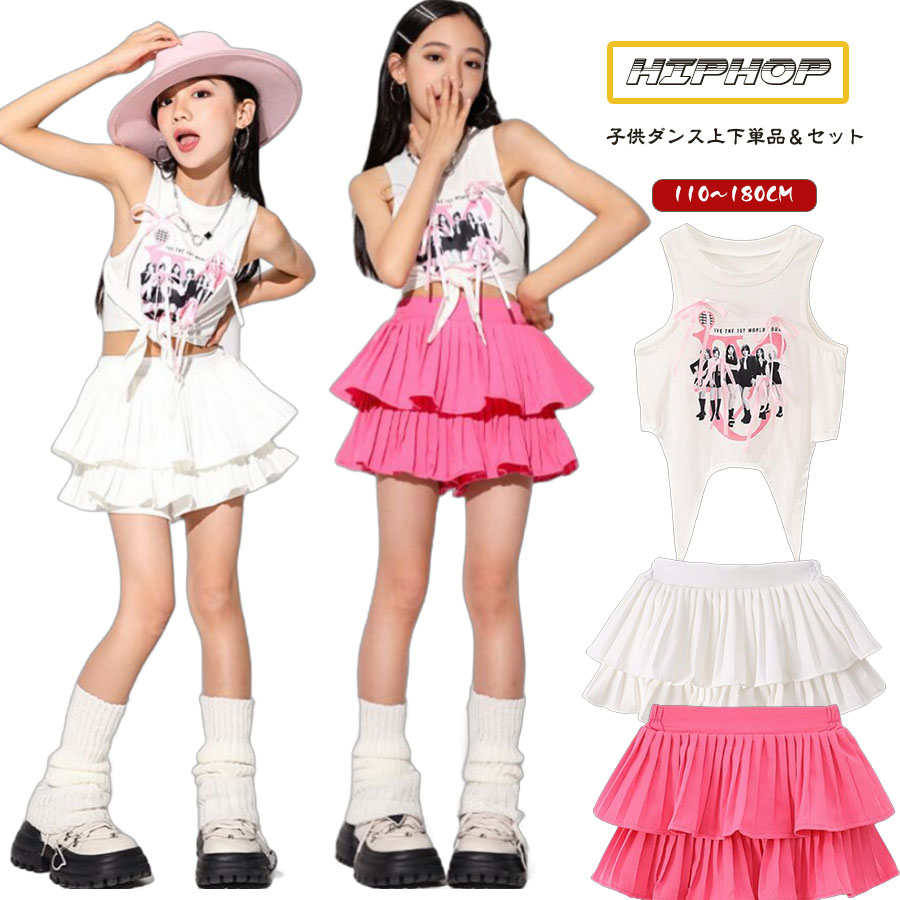 キッズダンス衣装 セットアップ hip キッズ ベビー マタニティ 続々入荷中 白トップス ピンクスカート 白スカート トップス+ピンクスカート トップス+白スカート 110 120 130 140 150 160 170 180