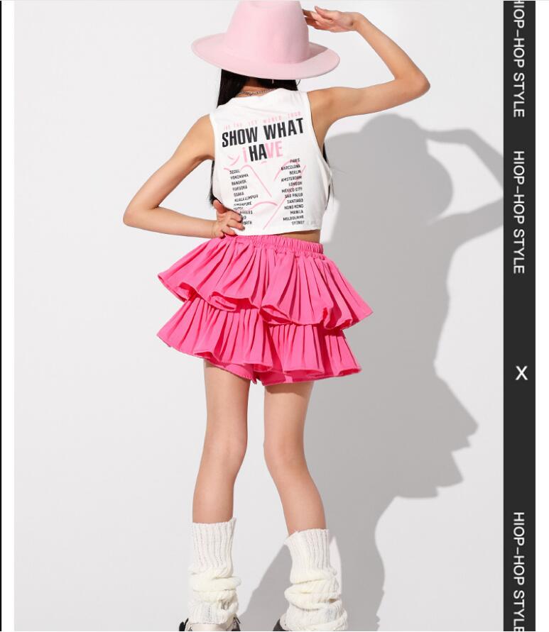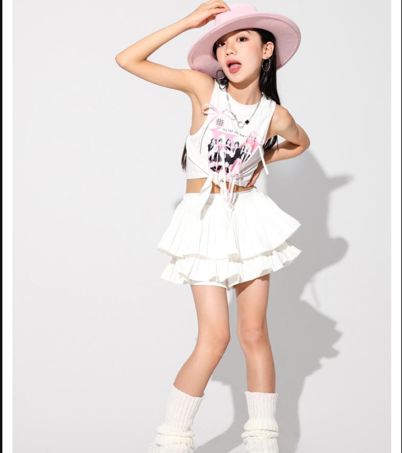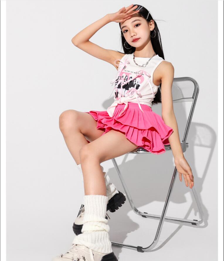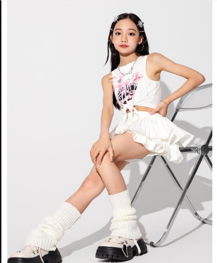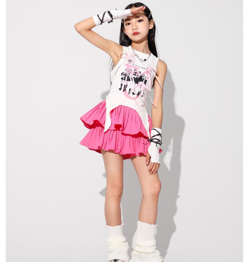 キッズダンス衣装 セットアップ hip キッズ ベビー マタニティ 続々入荷中 白トップス ピンクスカート 白スカート トップス+ピンクスカート トップス+白スカート 110 120 130 140 150 160 170 180