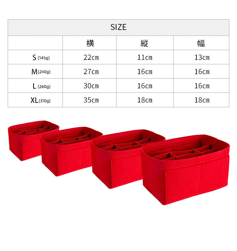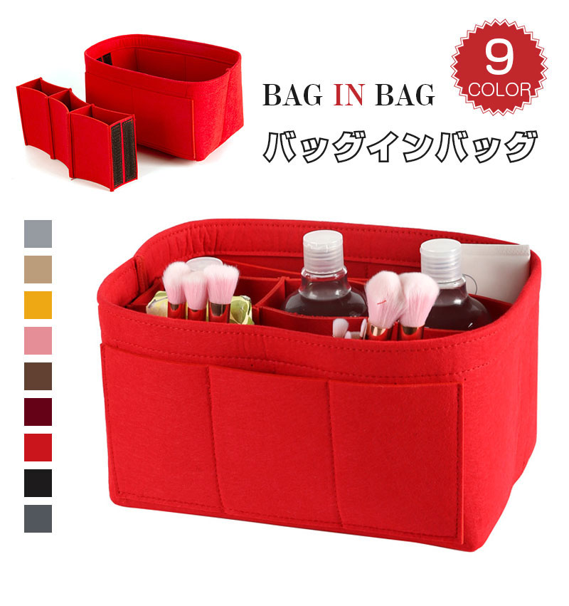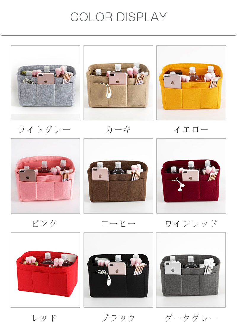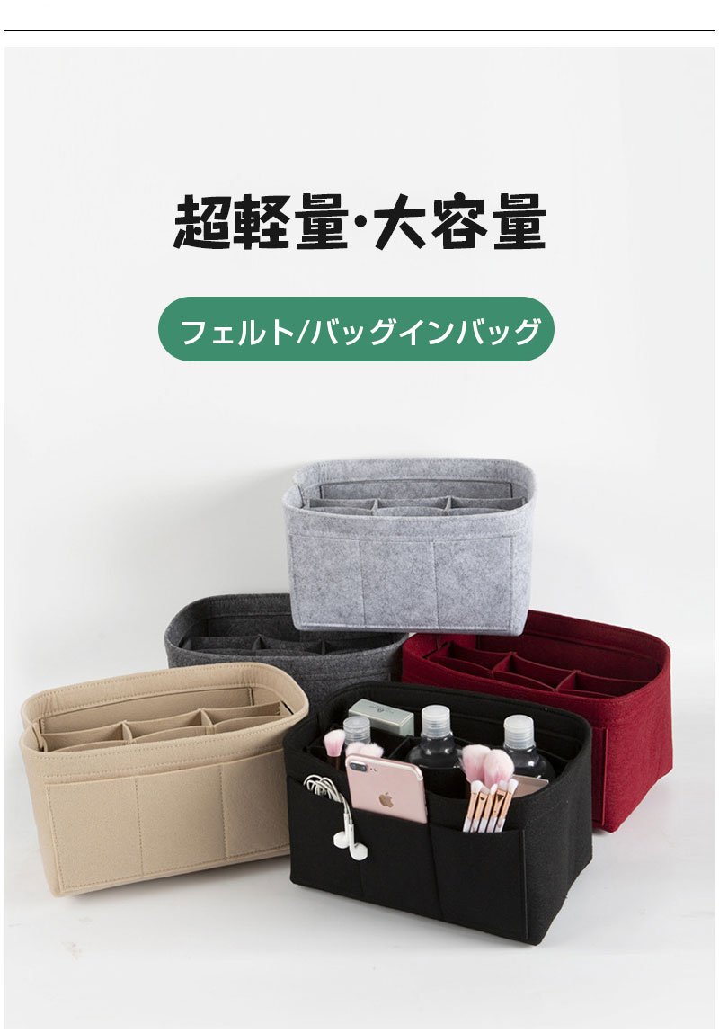 バッグインバッグ インナーバッグ 軽い バッグ 小物 ブランド雑貨 人気 レッド カーキ ダークグレー コーヒー イエロー ワインレッド ピンク ブラック ライトグレー Sサイズ Mサイズ Lサイズ XLサイズ