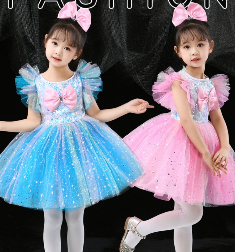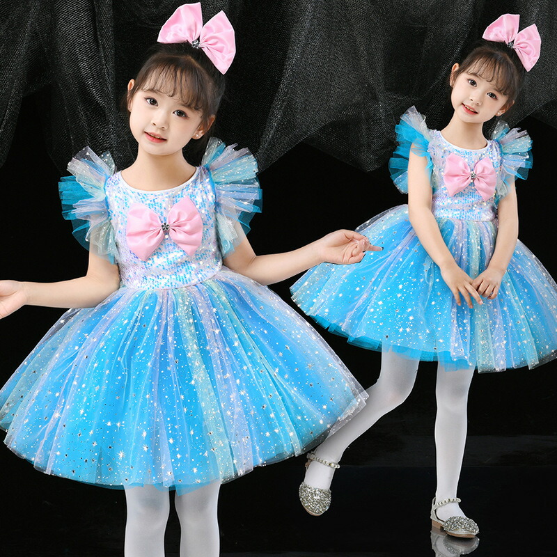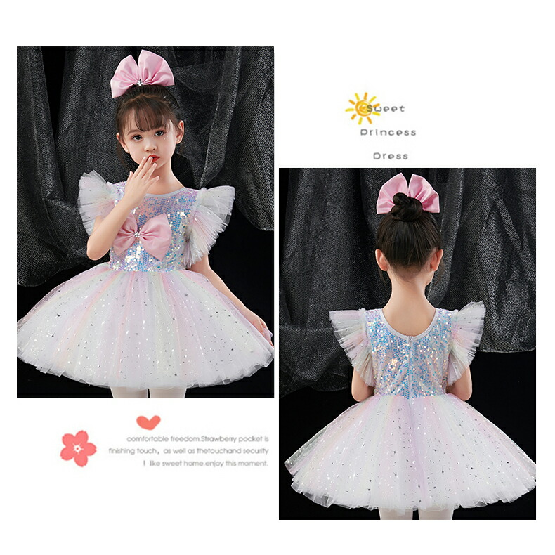 キッズ ダンス衣装 子供ワンピース 女 キッズ ドレス 早い者勝ち ピンク イエロー ブルー ホワイト 100 110 120 130 140 150 160