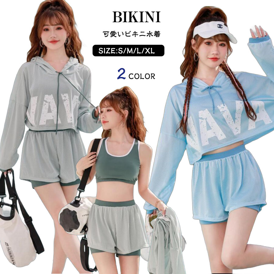 水着 レディース 体型カバー 小胸 中 レディースファッション 新作 ブルー グリーン S M L XL