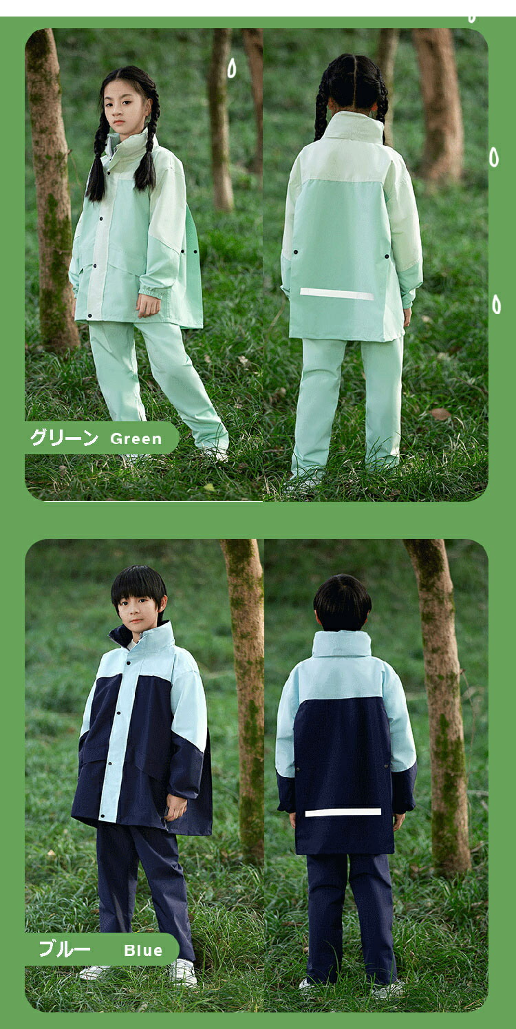 キッズ レインウエア レインスーツ 上 キッズ レインウェア 傘 レインコート 人気 グリーン ブルー ダークグリーン レッド XL 2XL 3XL 4XL
