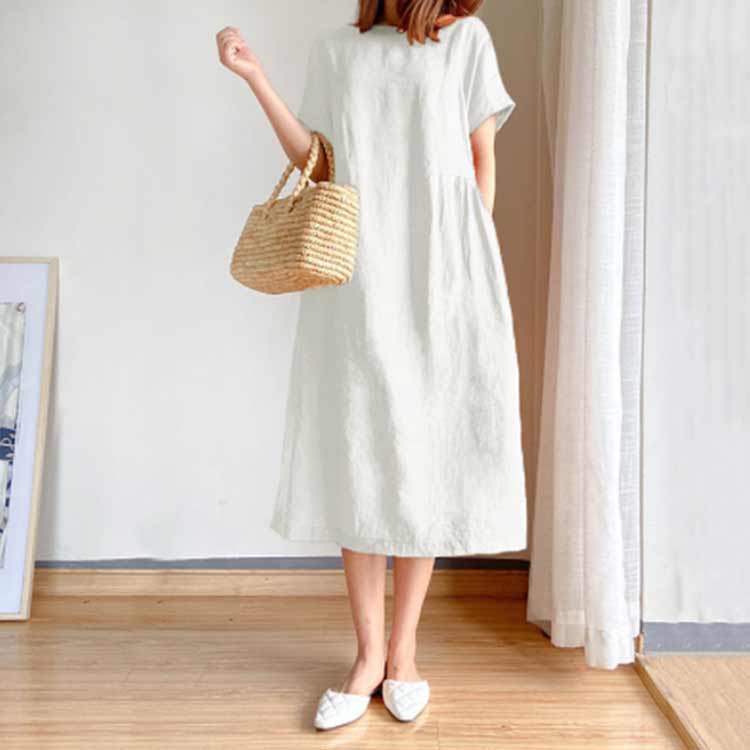 リネンワンピース ナチュラル ワンピー レディースファッション 超目玉商品 ホワイト ブラック レッド パープル ライトブルー ピーコックブルー オレンジ ピンク ネイビー M L XL 2XL 3XL 4XL