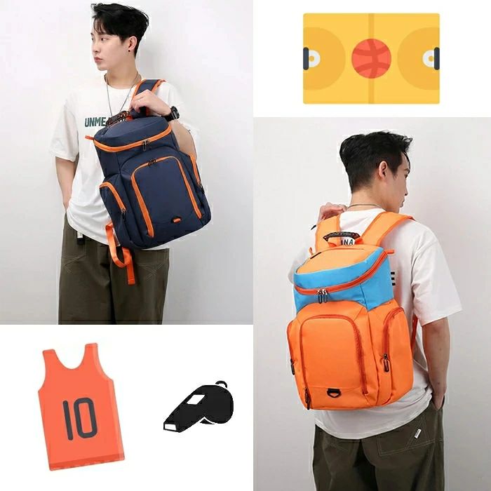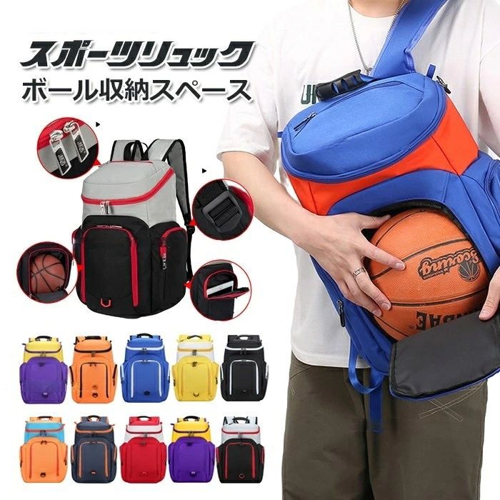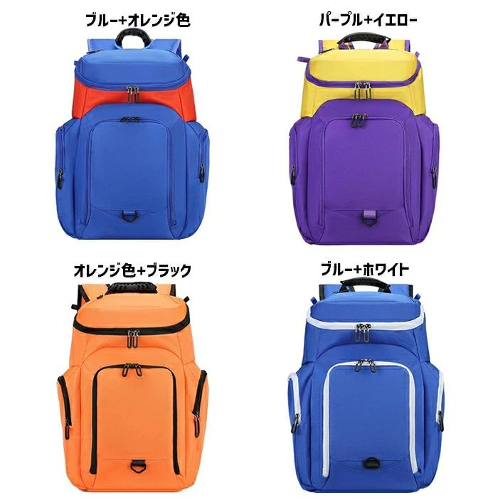 バスケ リュック ボール 収納 バッグ スポーツ アウトドア 豊富 ブルー+オレンジ パープル+イエロー オレンジ+ブラック ブルー+ホワイト イエロー+ホワイト ブラック+ホワイト オレンジ+水色 ネイビー+オレンジ レッド+ホワイト ブラック+グレイ