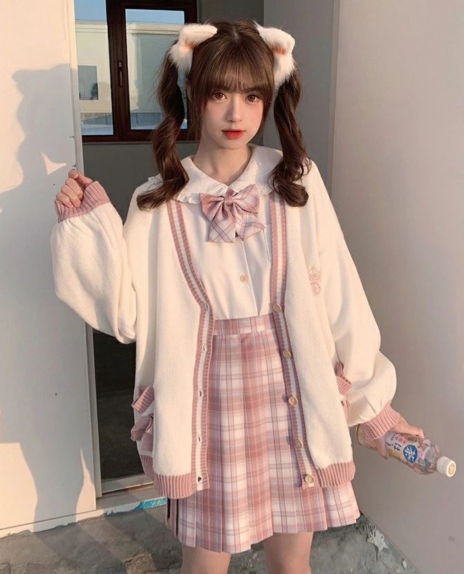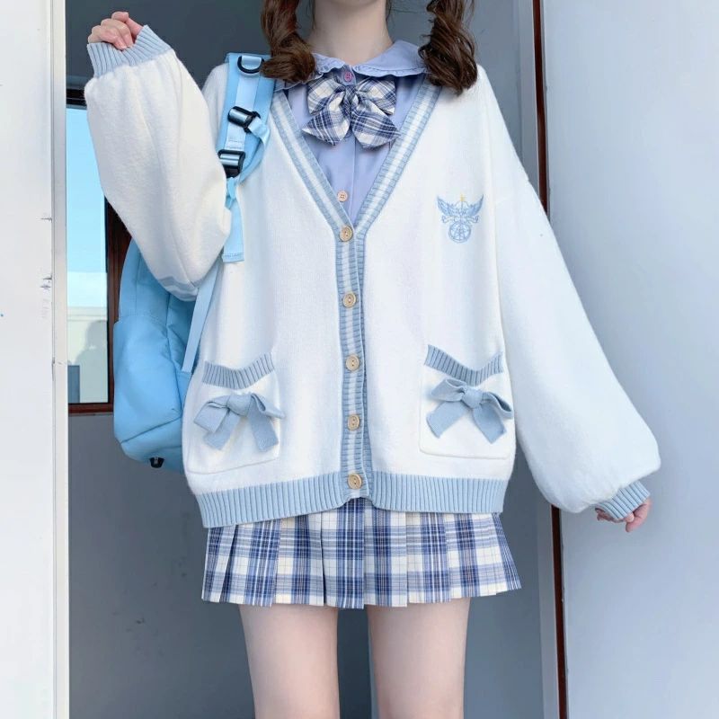 スクールカーディガン 秋冬 高校生 女 キッズ ベビー マタニティ 早い者勝ち ブルー カーディガン ピンク カーディガン ブルー4点セット ピンク4点セット XS S M L XL 2XL