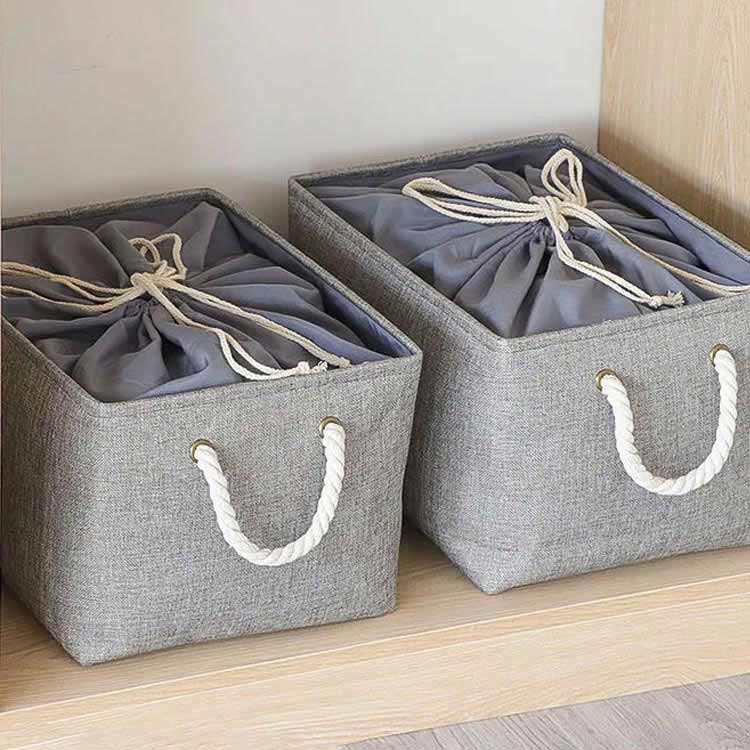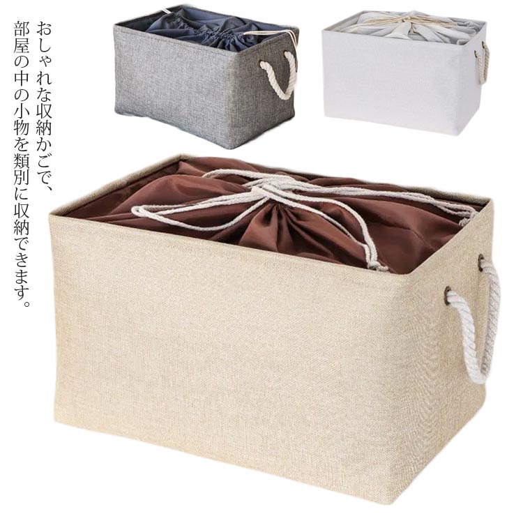 収納かご 巾着付き インテリア雑貨 収 ホワイト グレー イエロー 中 大