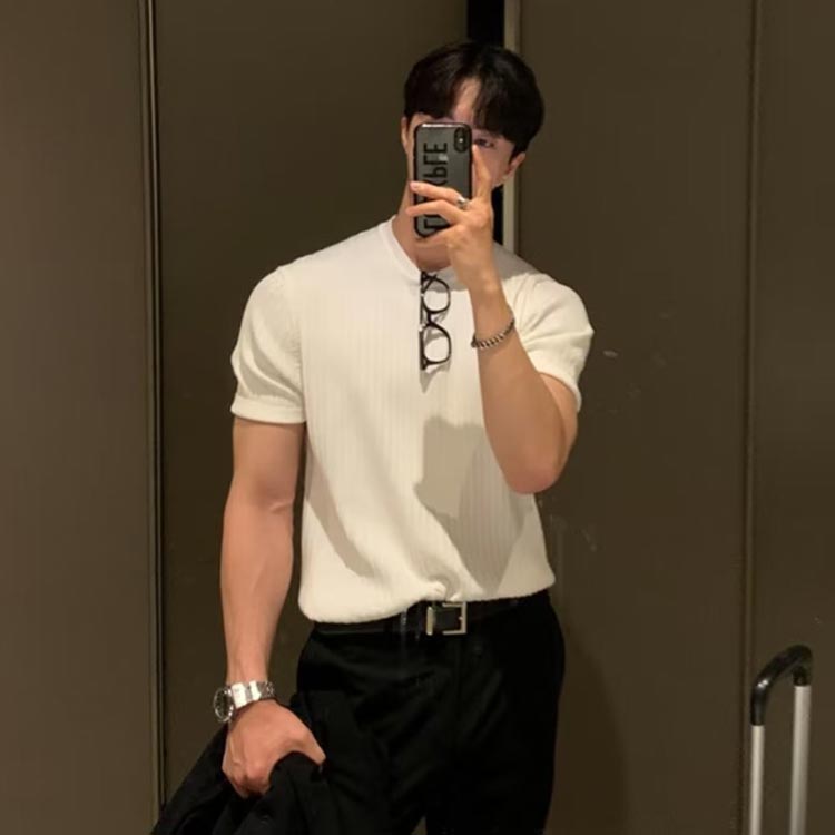 ニットトップス tシャツ メンズ 涼し メンズファッション 通販 ネイビー ホワイト グリーン ブラック ブラウン M L XL 2XL 3XL