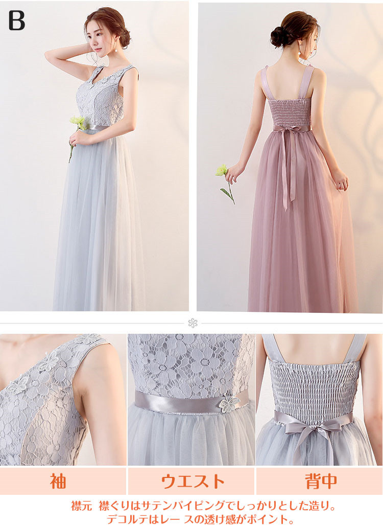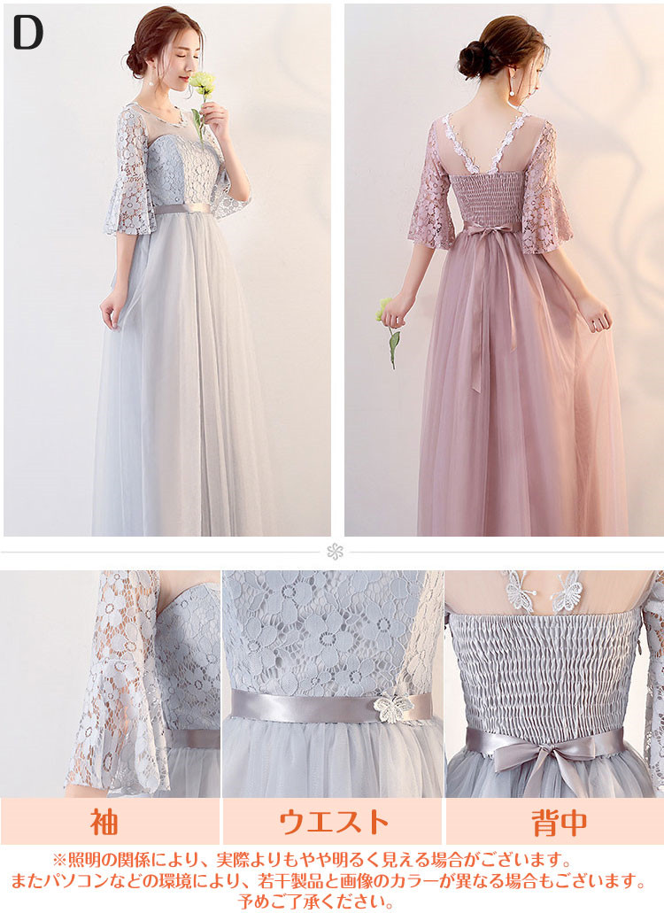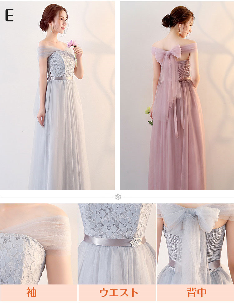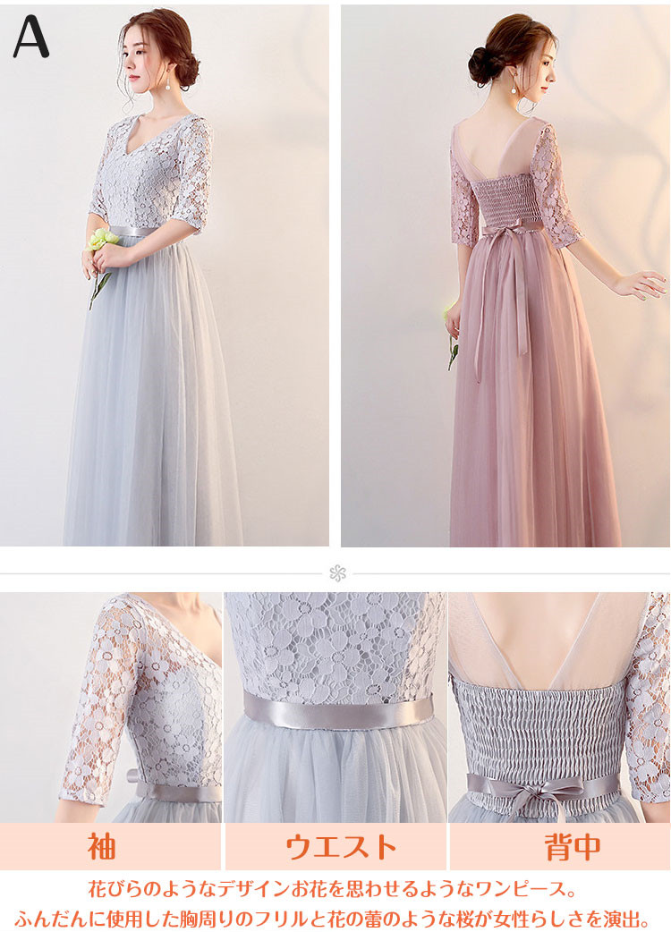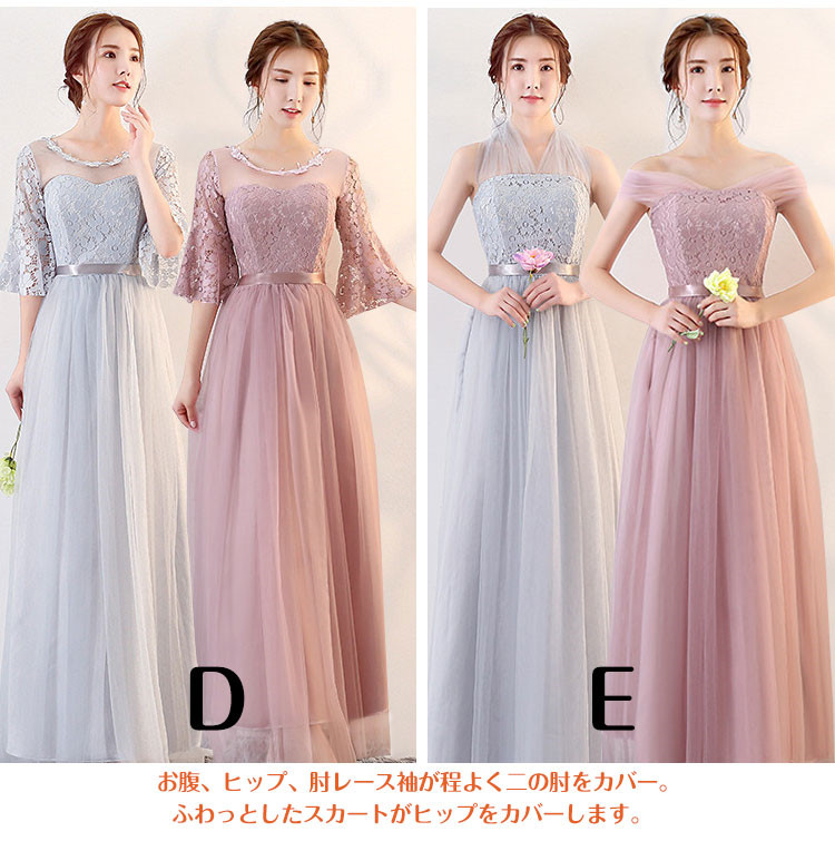 ブライズメイド ドレス マキシ丈 ロン ドレス 新登場! くすんだピンク グレー A B C D E