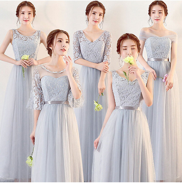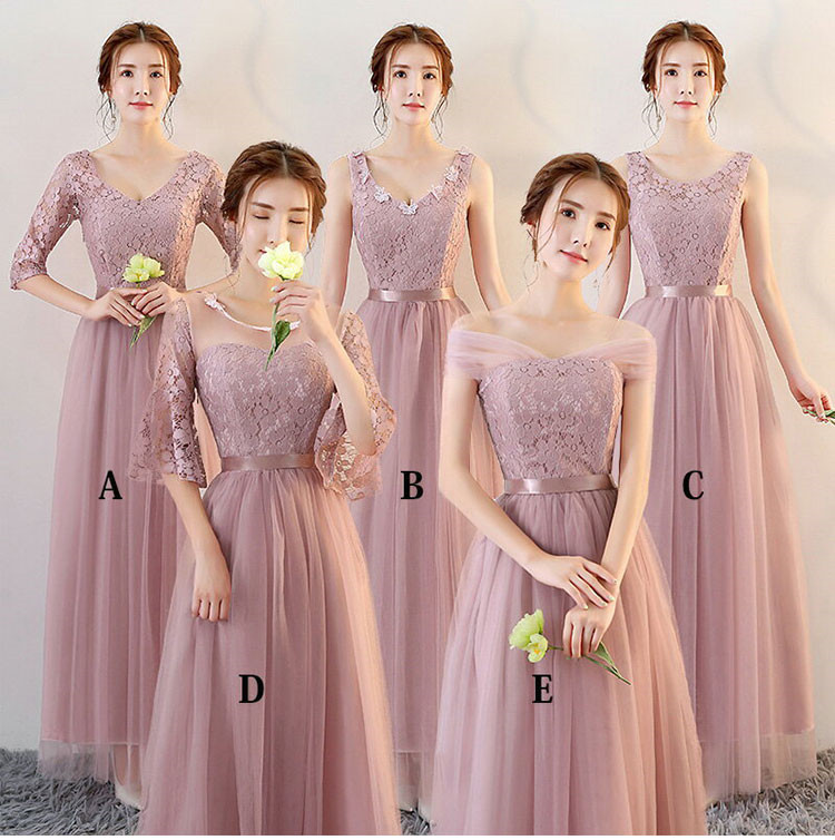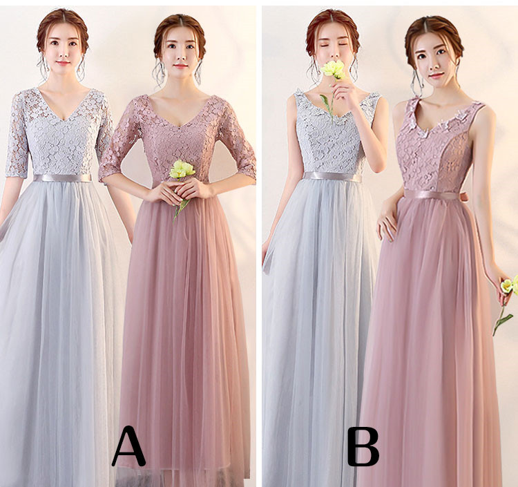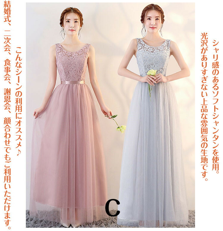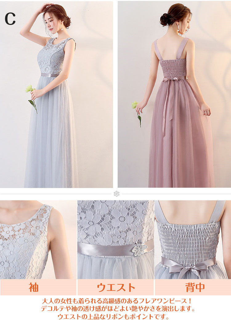 ブライズメイド ドレス マキシ丈 ロン ドレス 新登場! くすんだピンク グレー A B C D E