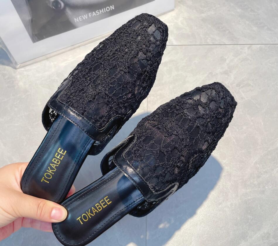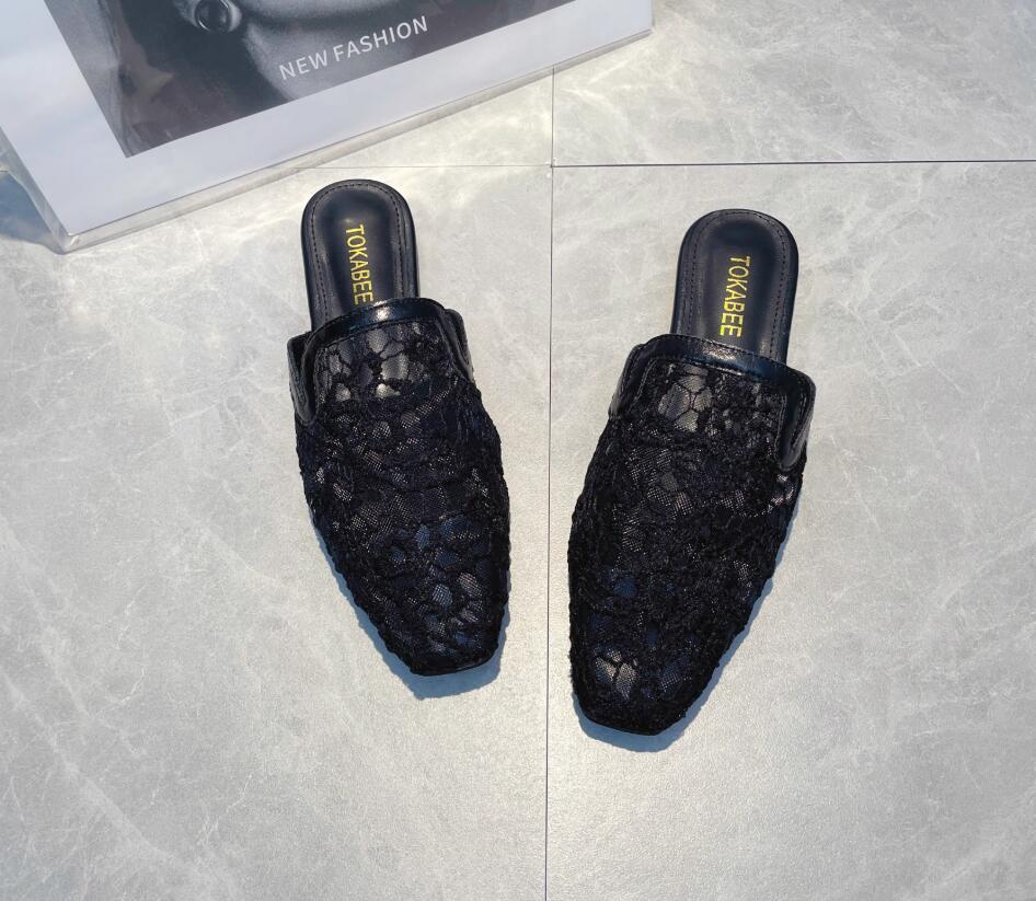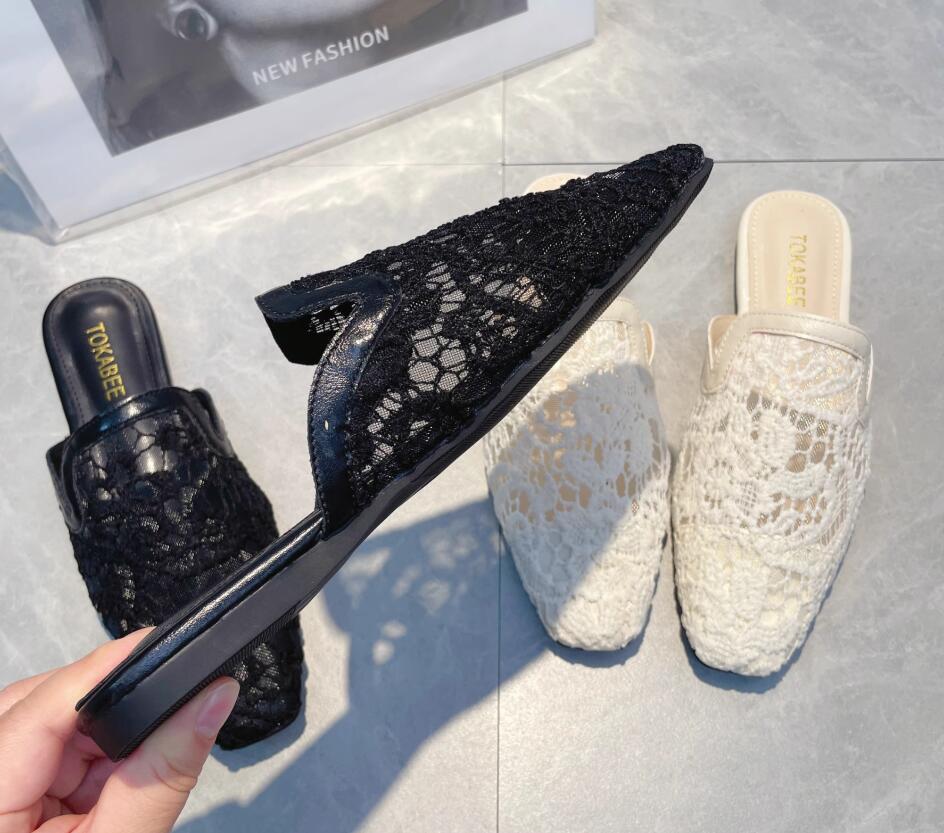 ミュール スリッパ 総レースパンプス夏 靴 人気 ホワイト ブラック 22.5cm 23cm 23.5cm 24cm 24.5cm 25cm 25.5cm