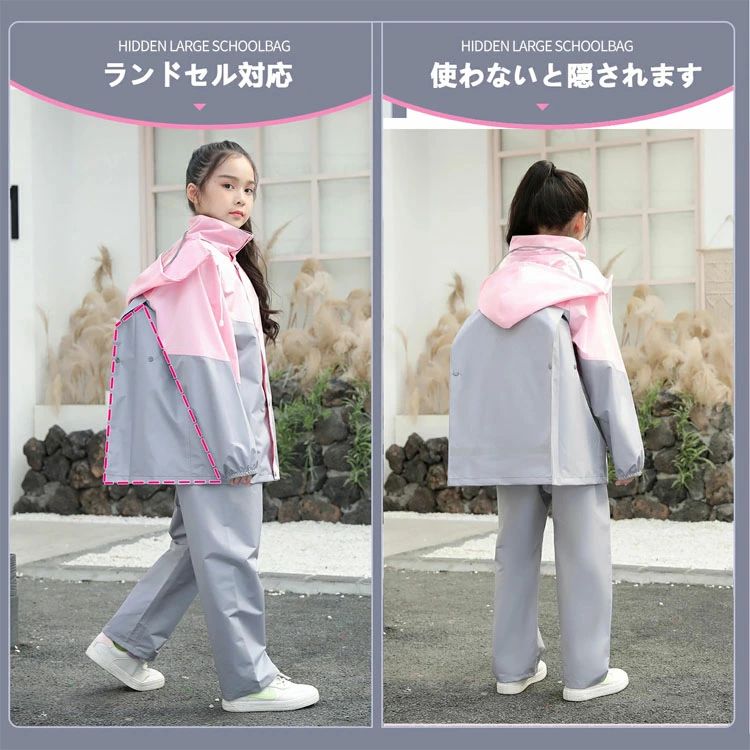レインコート キッズ 上下 ランドセル キッズ レインウェア 傘 レインコート 人気 ピンク+グレー グリーン+ブラック ブラック+ホワイト ネイビー+レッド ブルー+イエロー XL 2XL 3XL 4XL