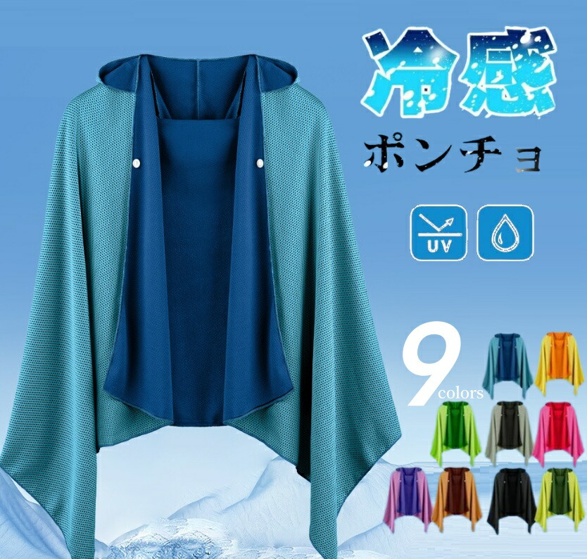冷感ポンチョ 冷感タオル 冷感ストール 冷却100% 冷感繊維使用 クールケープ クールタオル 涼しい 熱中症対策 スポーツタオル 吸水 速乾 防臭 長時間 対策 運動会 海 連続使用 軽量 スポーツ
