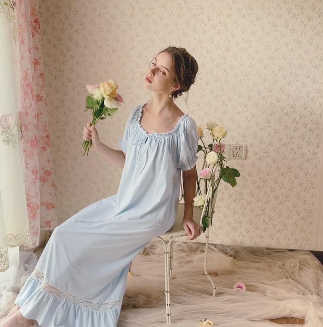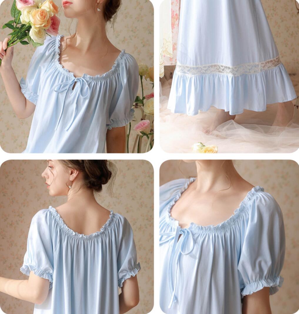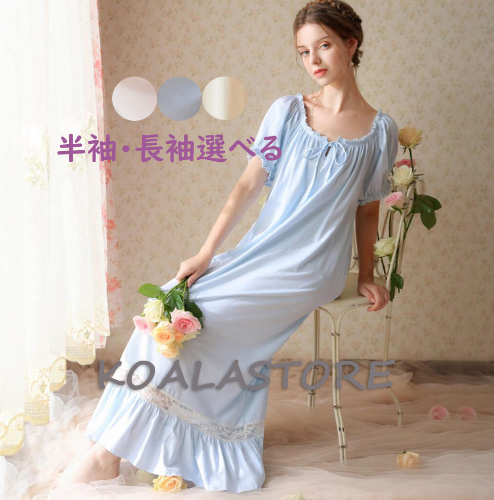 レディース パジャマ ネグリジェ 半袖 インナー 下着 ナイトウエア 新作 S M L XL ホワイト半袖 ピンク半袖 ブルー半袖 ホワイト長袖 ピンク長袖 ブルー長袖