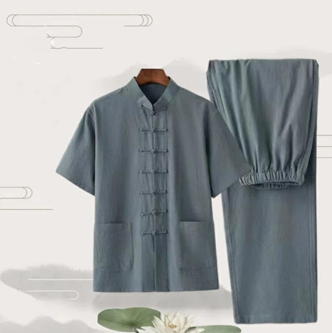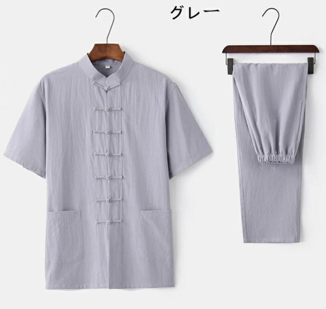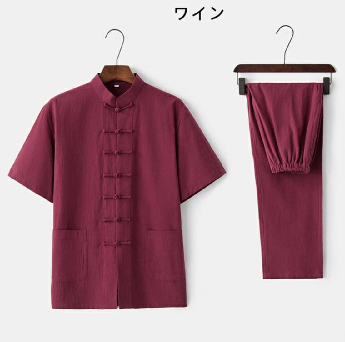 メンズ 綿麻太極拳ウェア チャイナ服 スポーツ アウトドア 新作 ブルー・灰 ワイン ベージュ ネイビー グレー ブラック ホワイト 165/M 170/L 175/XL 180/2XL 185/3XL 190/4XL
